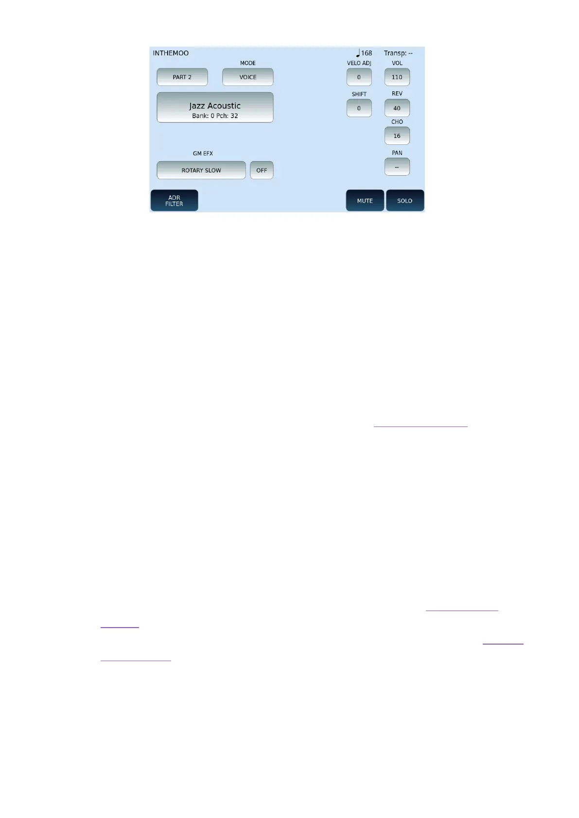• GM Voice Select: The button displays the name of the assigned GM voice, its