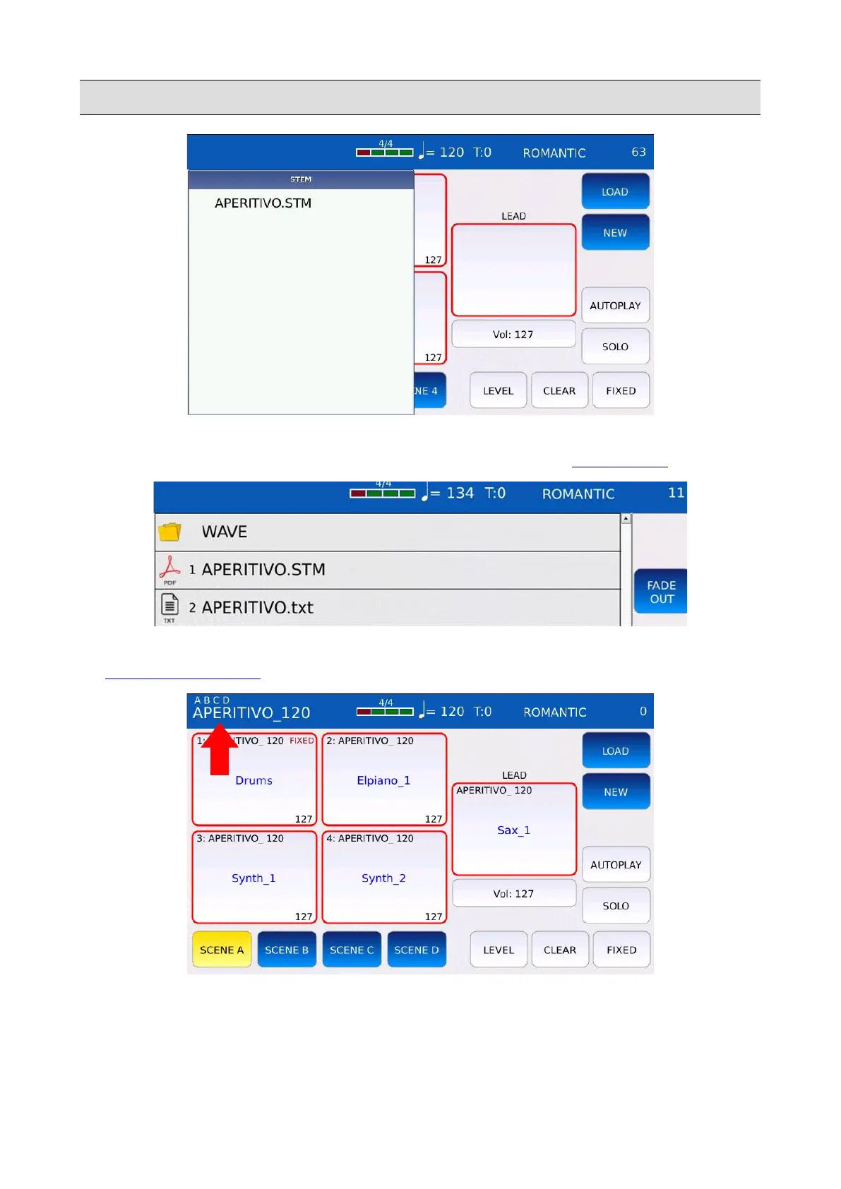 NB: when you load a Stem Project, the not-empty scenes will be displayed at the top-right corner of