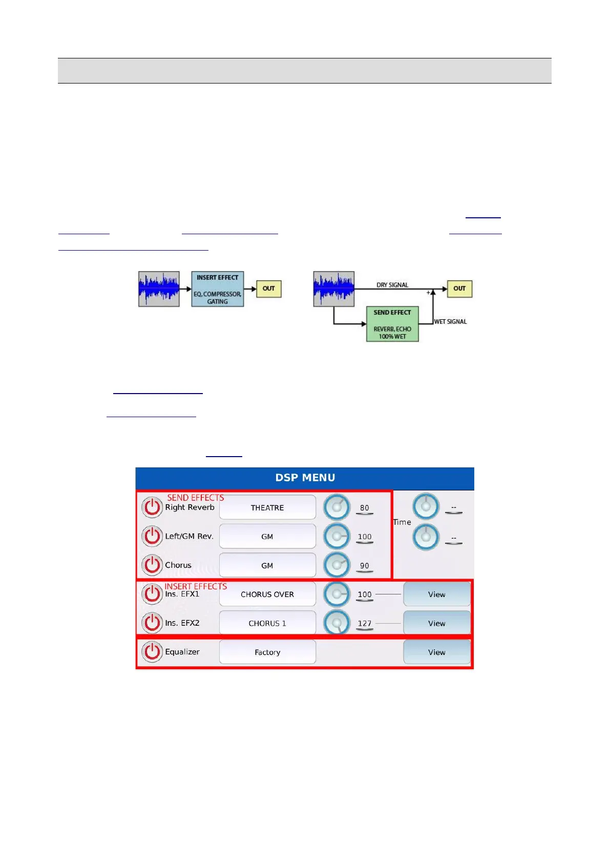 In DSP mode you can manages the effects settings, edit the effect chains, adjust the reverb and