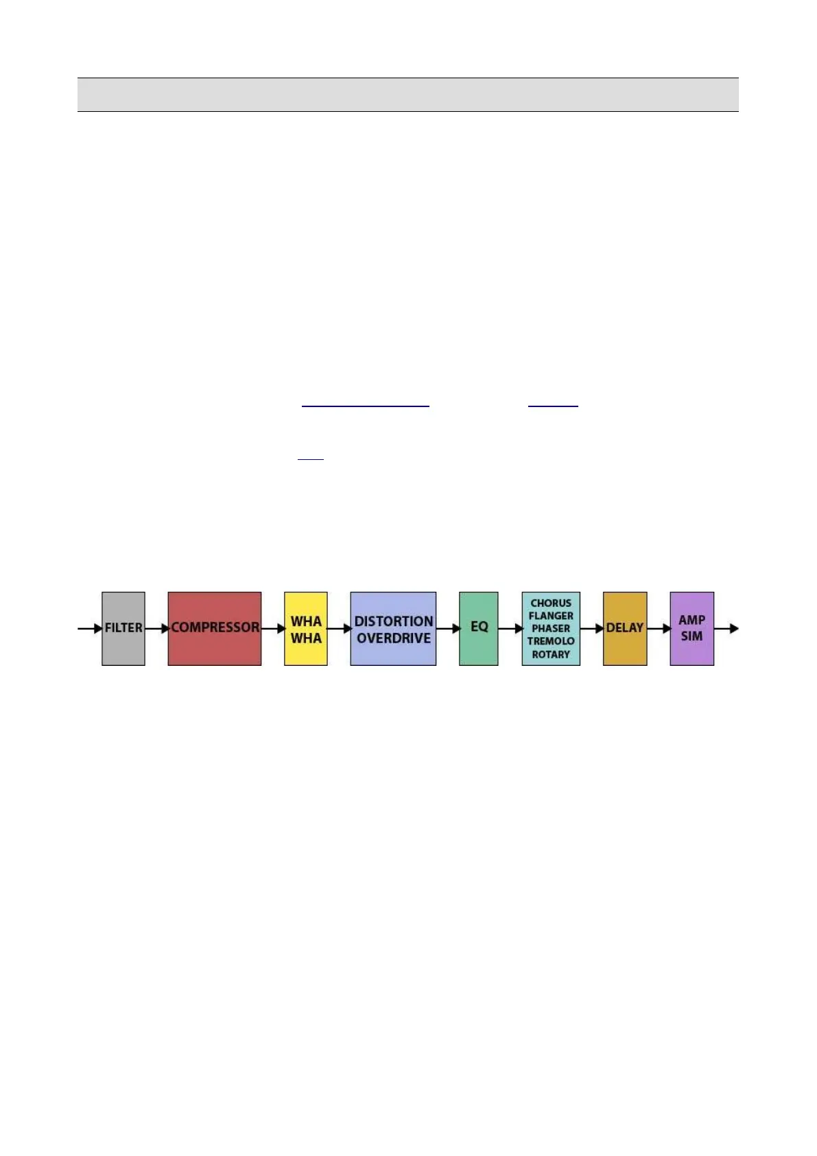 A brief description of all the available effects in the chain is given below: