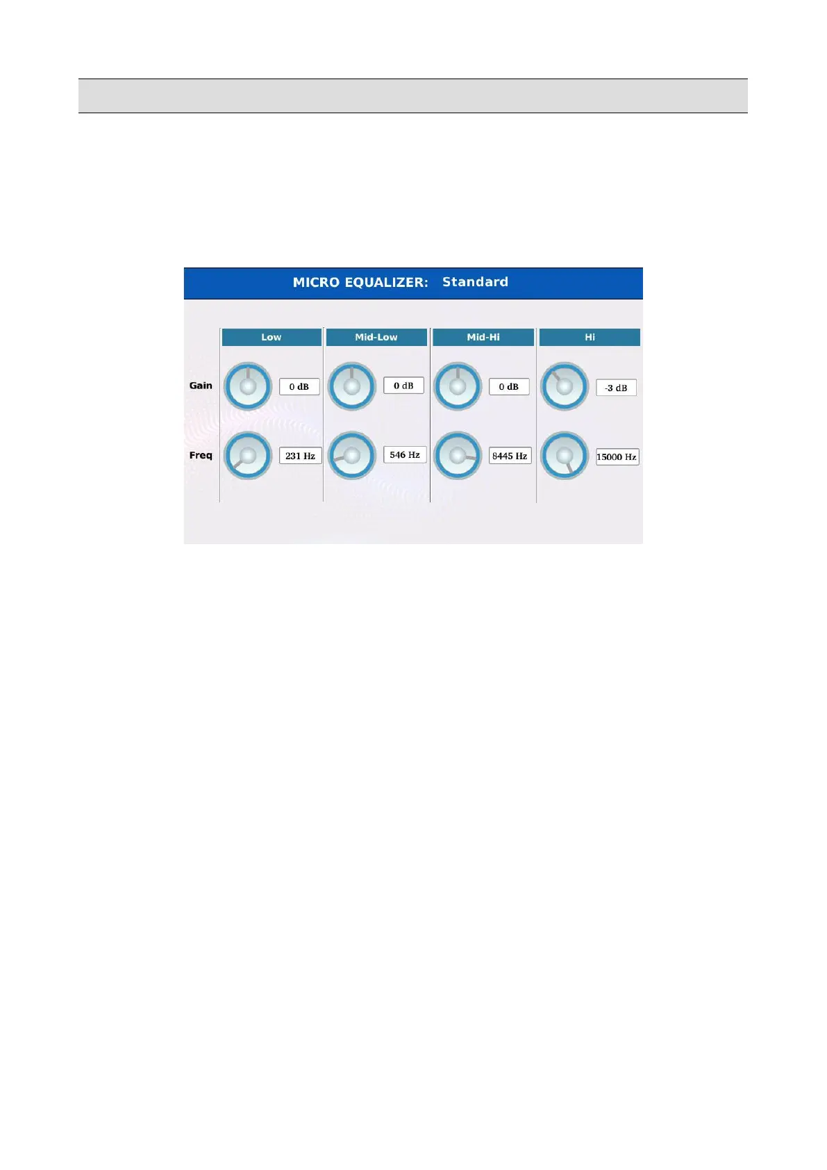 frequencies (HIGH) and by two peak filters, one for the mid-low frequencies (MID-LOW) and one