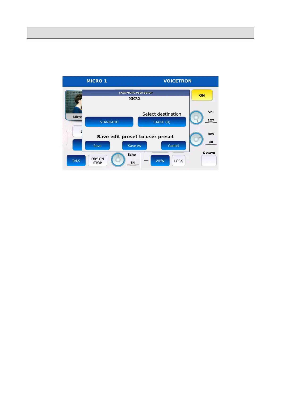 • Tap on SAVE or tap on SAVE AS to overwrite the destination preset or tap on CANCEL to