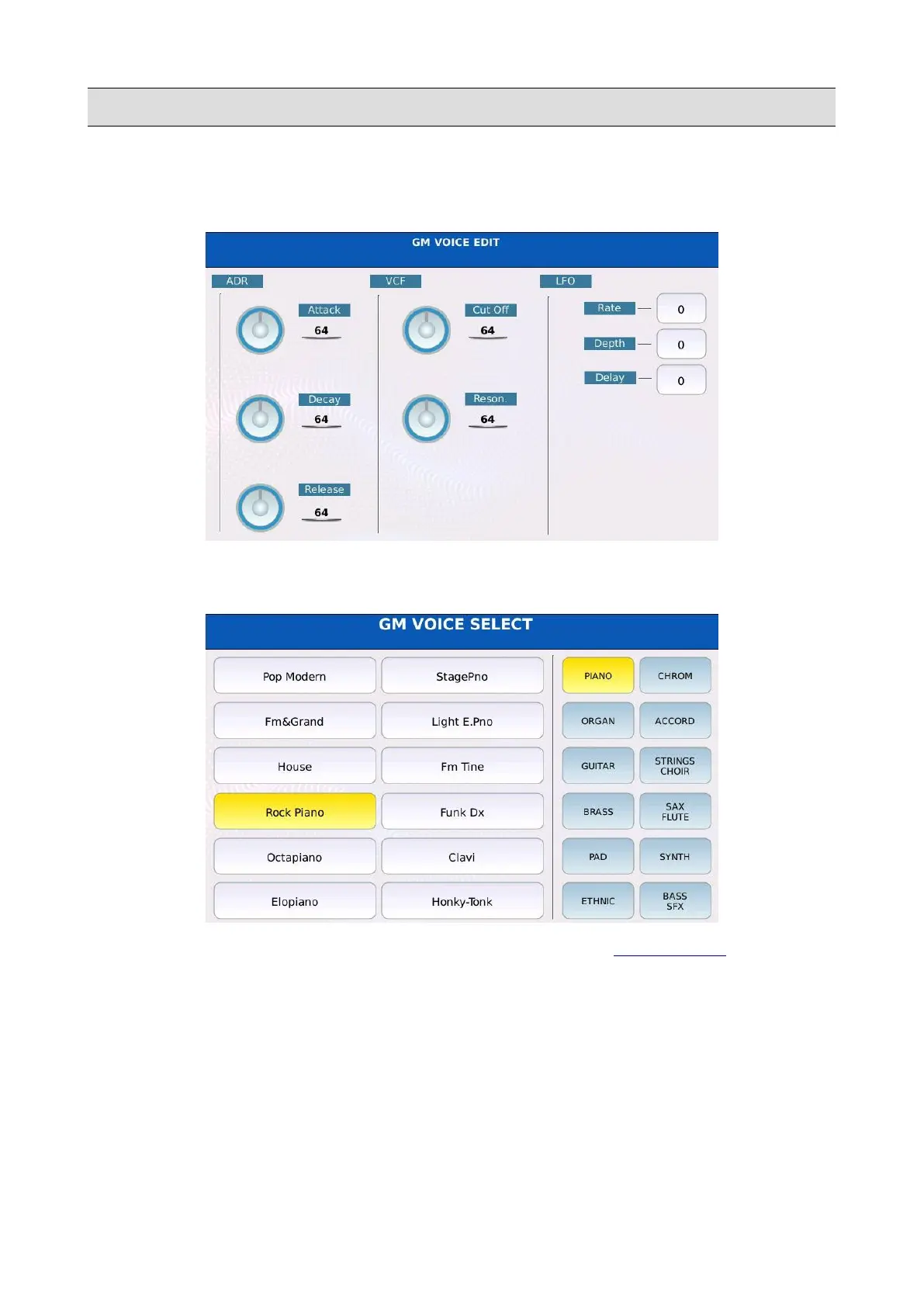 • EDIT: opens a page on which you may adjust the attack, decay and release of the amplitude