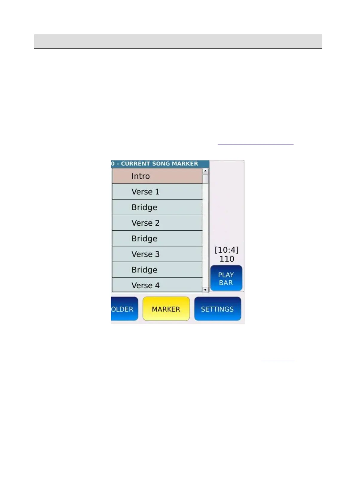 • Play a MIDI file and tap on the MARKER button of the PLAYER BOTTOM BAR to open