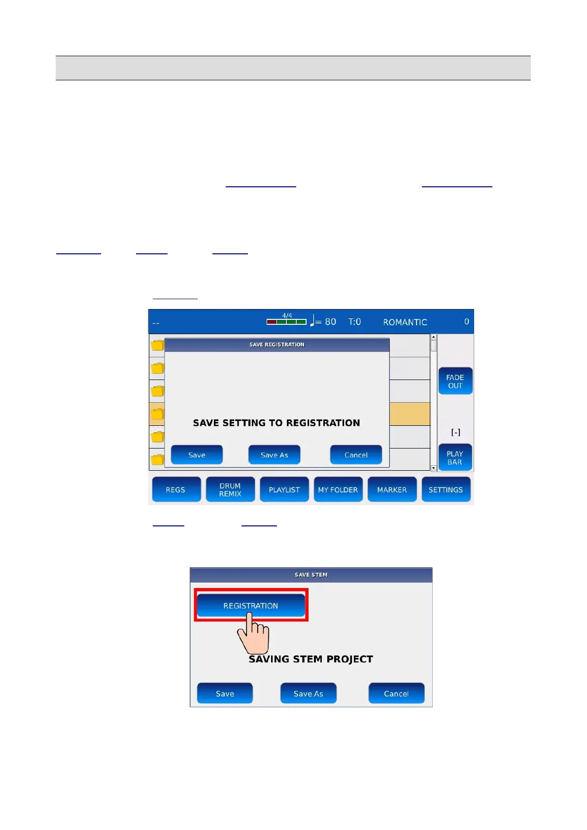 extension .srg and then recall it later when you need it. You can also save the current selected song,