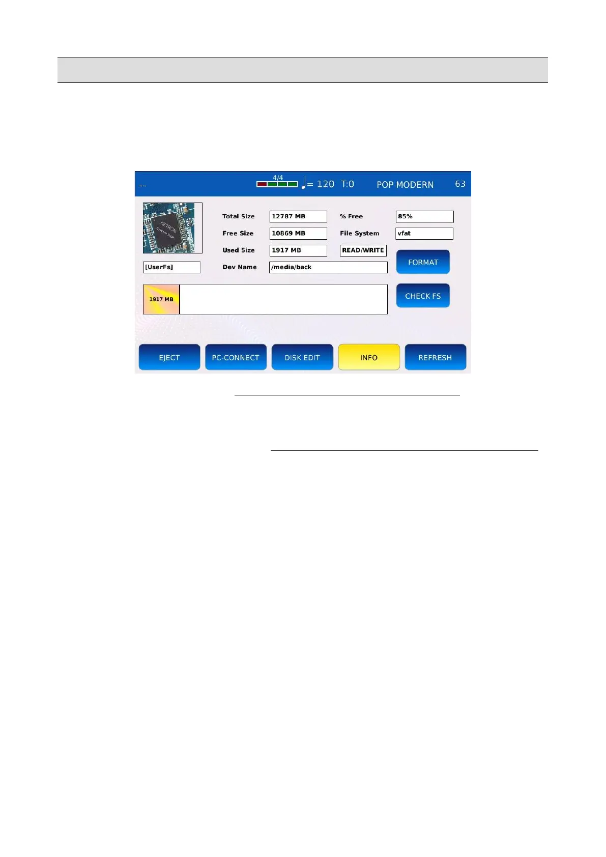 • FORMAT: formats the disk. WARNING: all disk content will be erased!