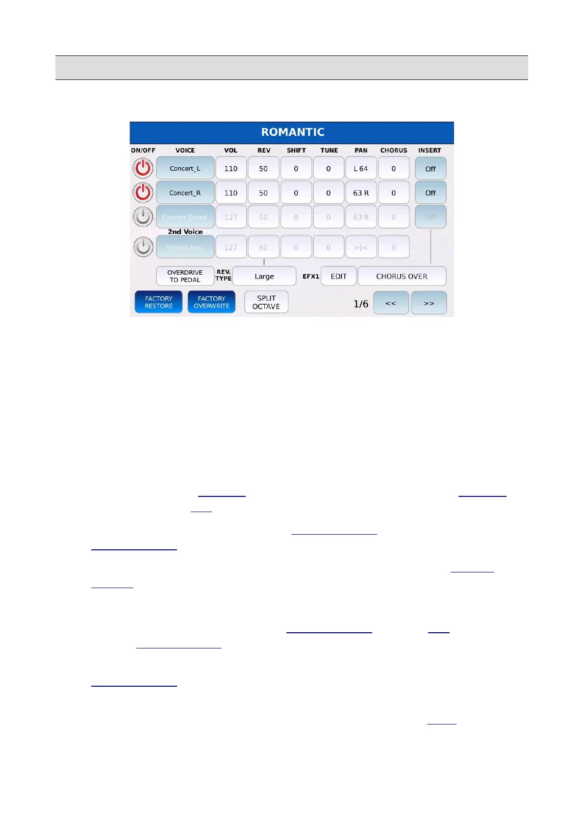 • EFX1 PRESET: allows you to choose an INSERT EFFECT preset (see DSP to know how to