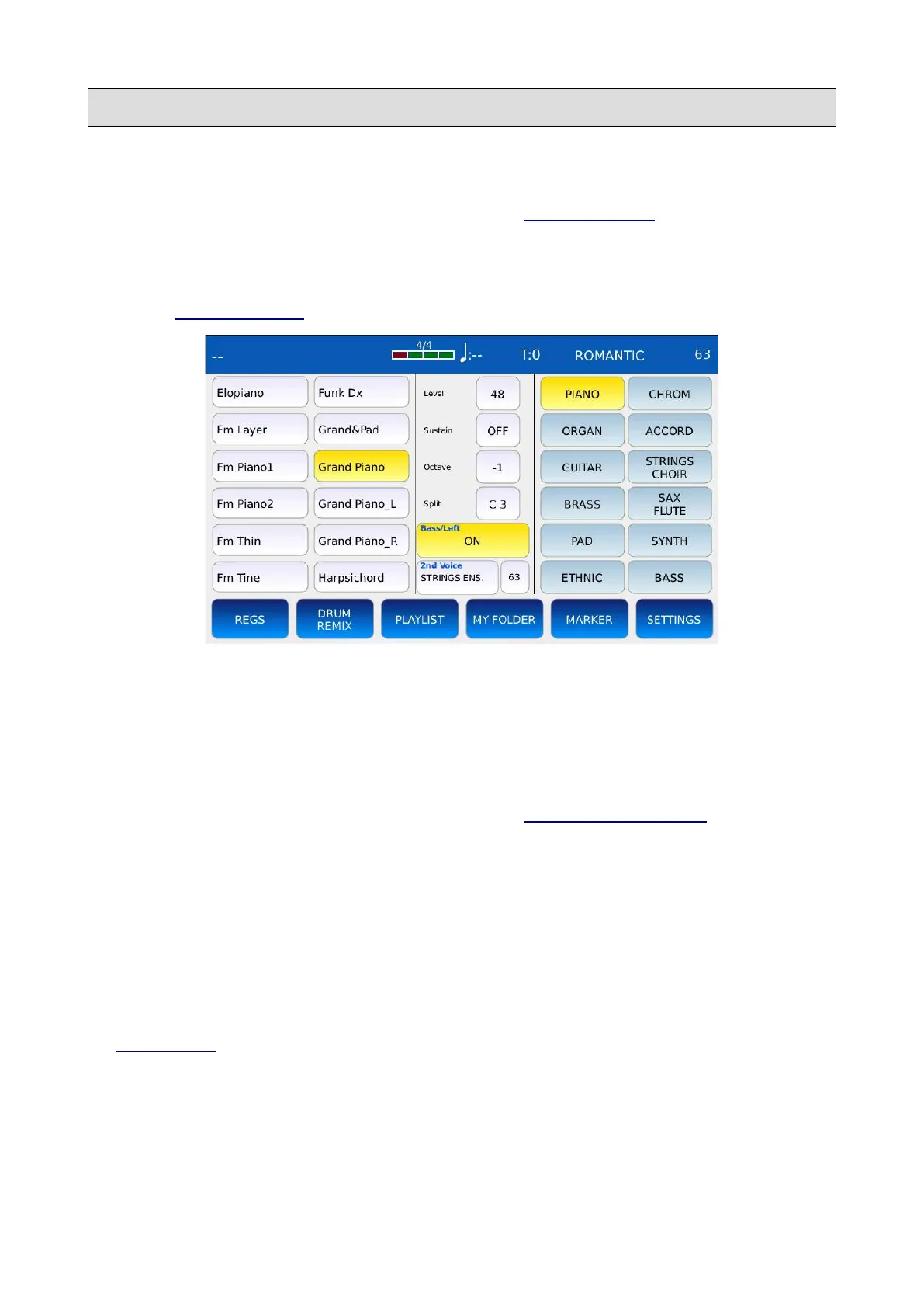 • LEVEL: adjust the volume of the BASS layer. Values range from 16 to 63.