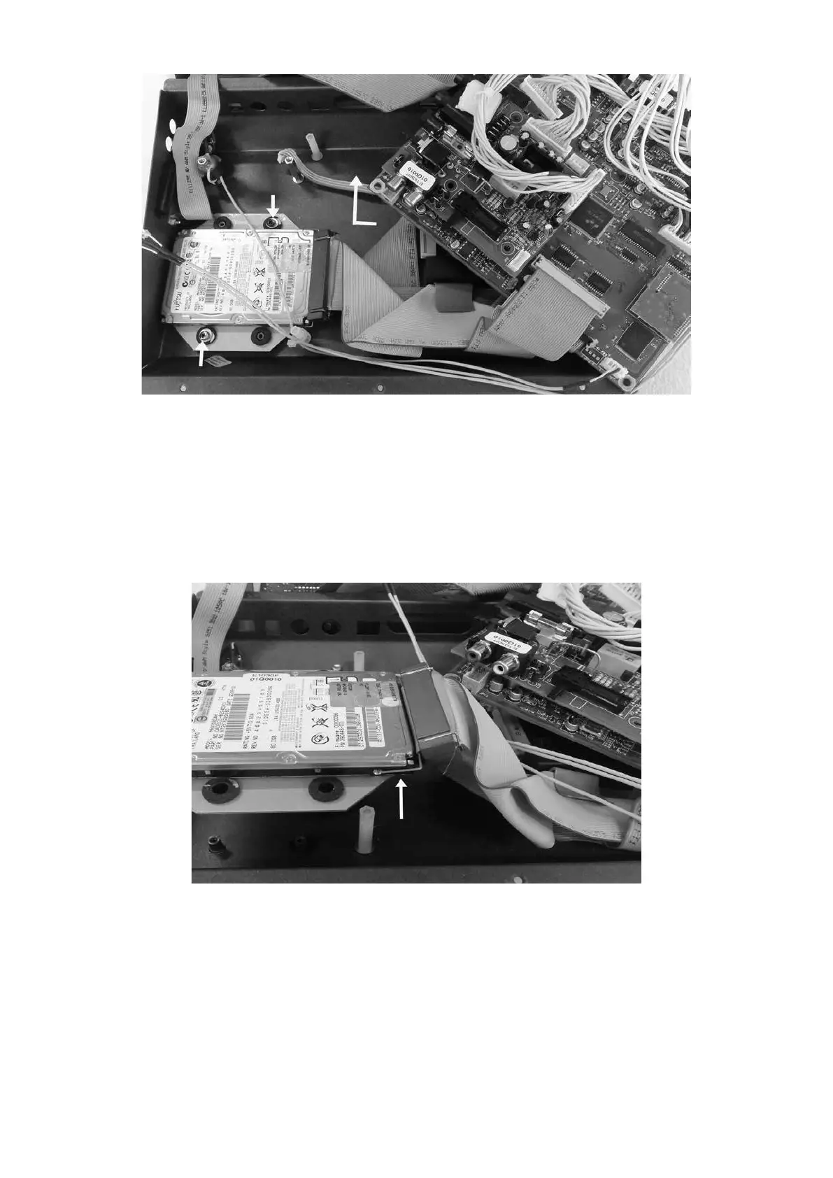 8. Turn over the hard drive assembly and remove the four screws that secure the hard disk. Taking