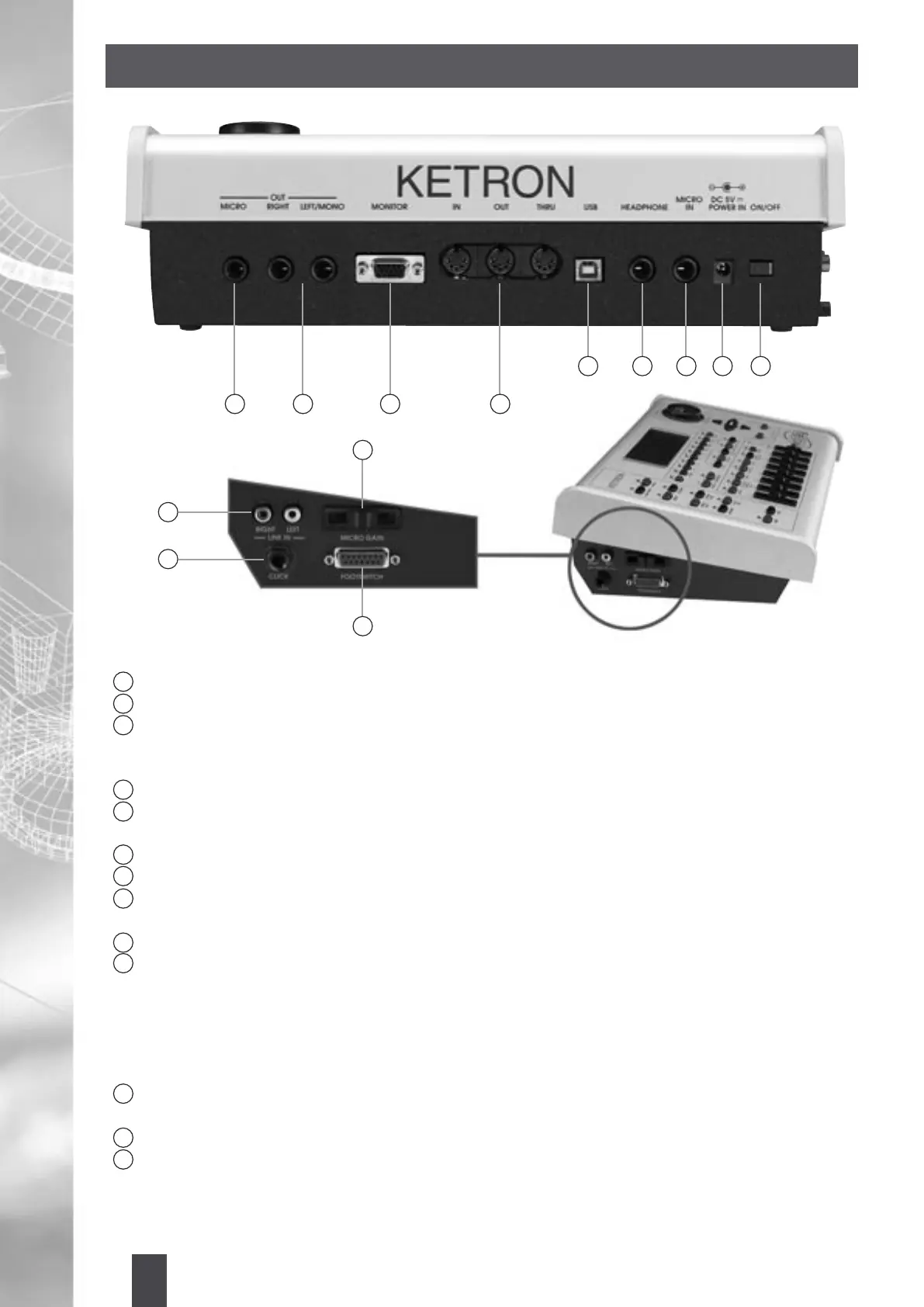 11 Click: Output for metronome Click. Direct this output toward a Mixer or a headphone amplier. The direct