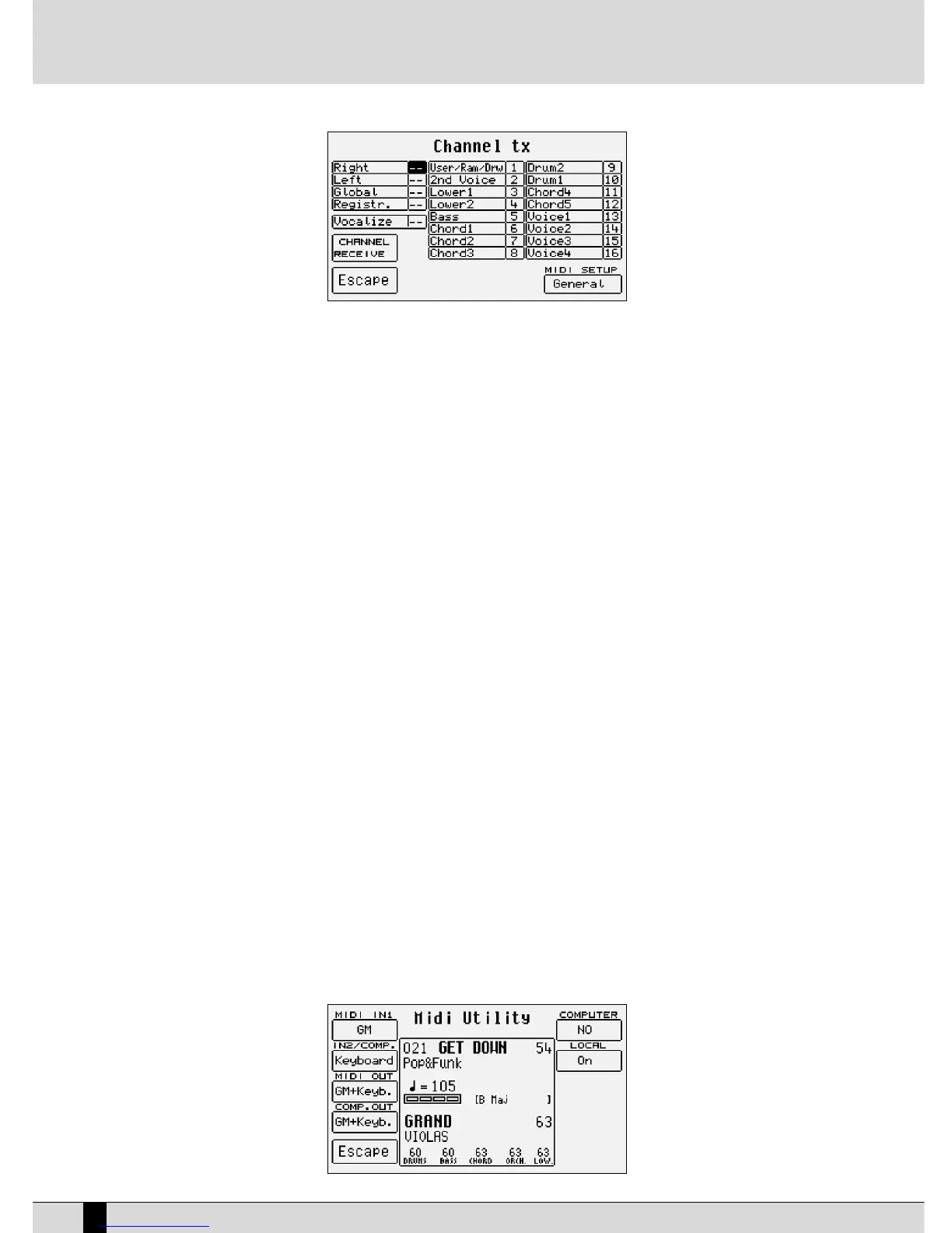 This is used to associate a MIDI transmitting channel on the MIDI OUT to each section. The following functions