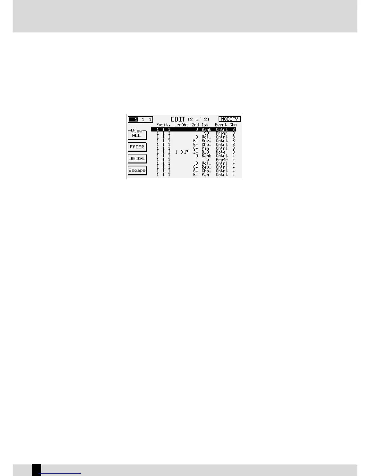STATUS: this box allows you to select the event types that will be affected by the changes. They are ALL, NOTE, PROGRAM, CONTROL, PITCH