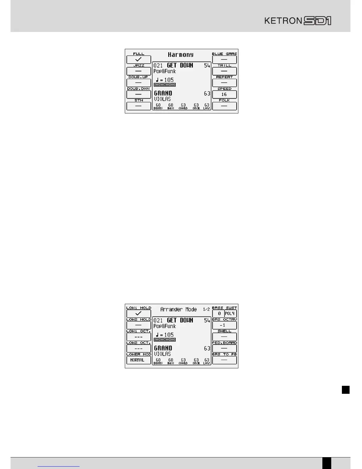 tion using the function buttons. It is not possible to activate more than one type of harmonisation and each selec-