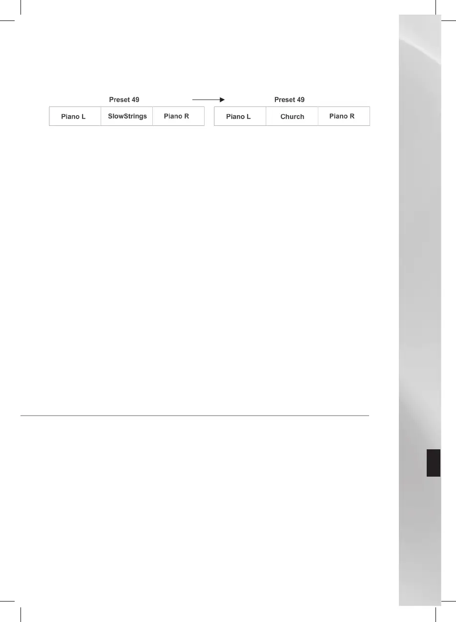 Supposons que l’on désire modifier le Preset 49 (Piano&Strings) pour le transformer en un