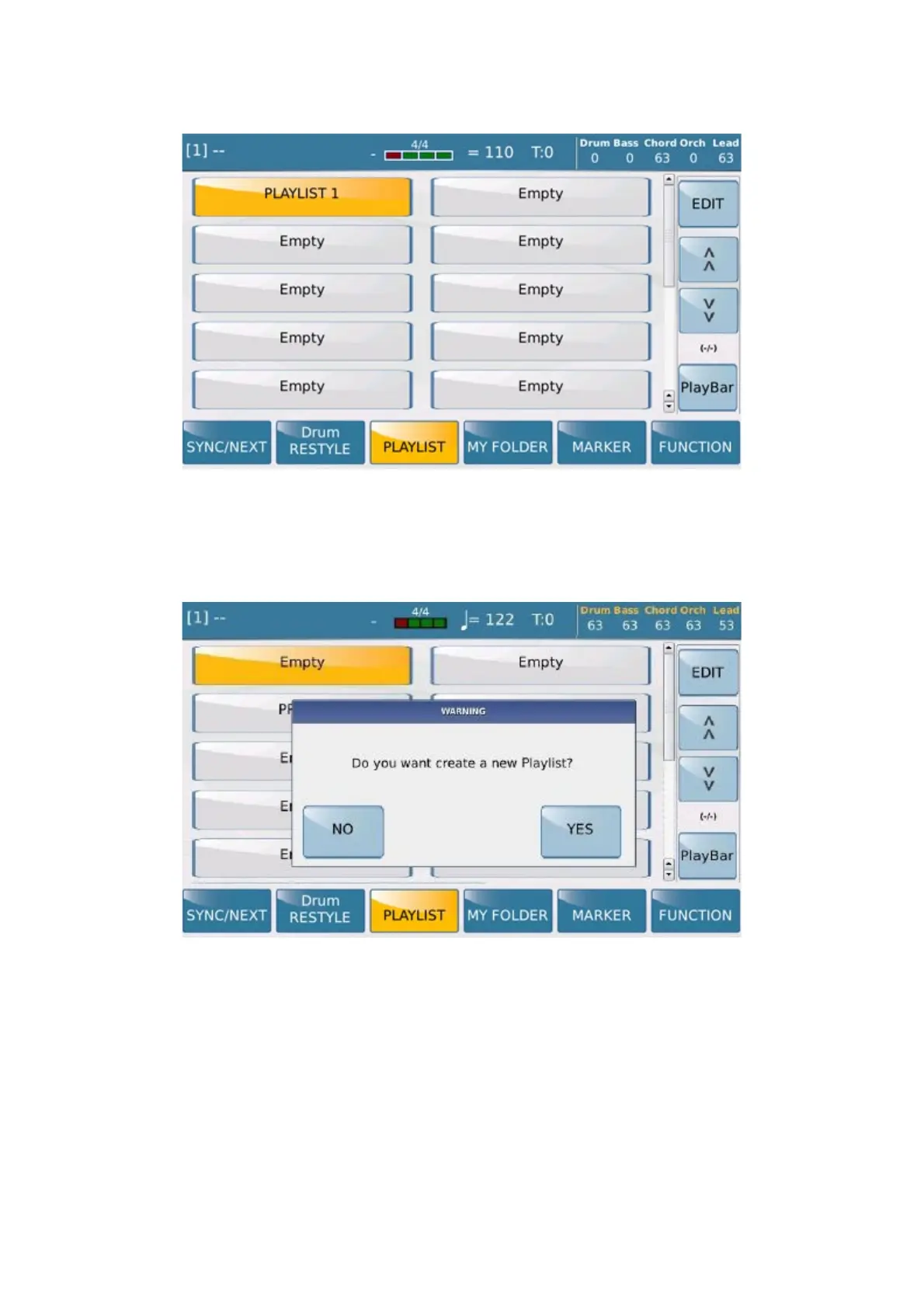 The Playlist is a list of files that may be played on the instrument and are displayed in a screen in the order decided