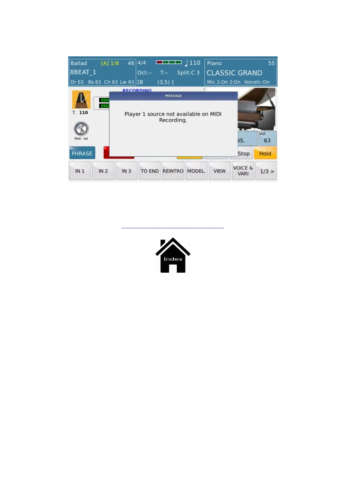 Info: In Midi Record (Phrase or Song) mode record from the source player will be unavailable . However SD 40 will