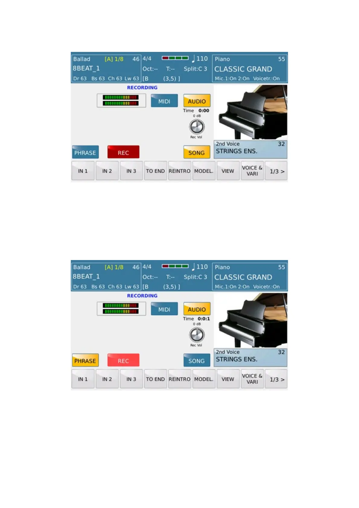 displayed on this picture is called SONG Mode. With it user can record freely (dependently of available memory)