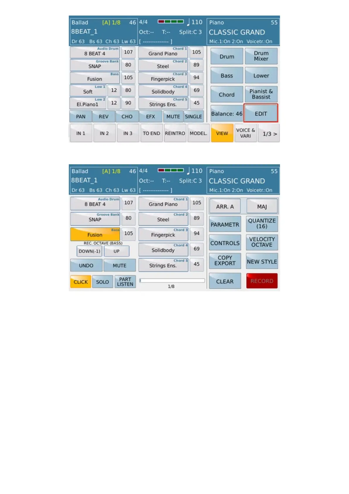 section (Bass / Chord 1-5) an Drum , Groove also selectable on RECORD Mode.