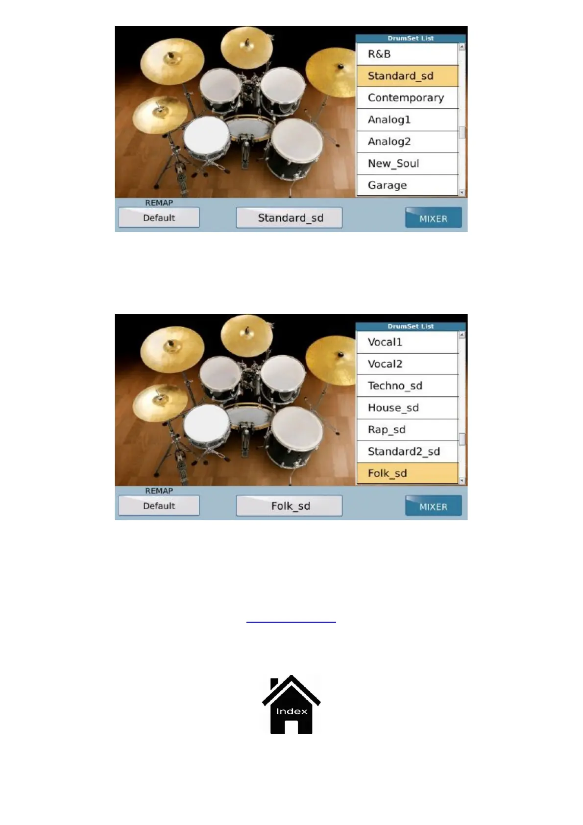 drums etc., a list of the Drum Kits is displayed. Press