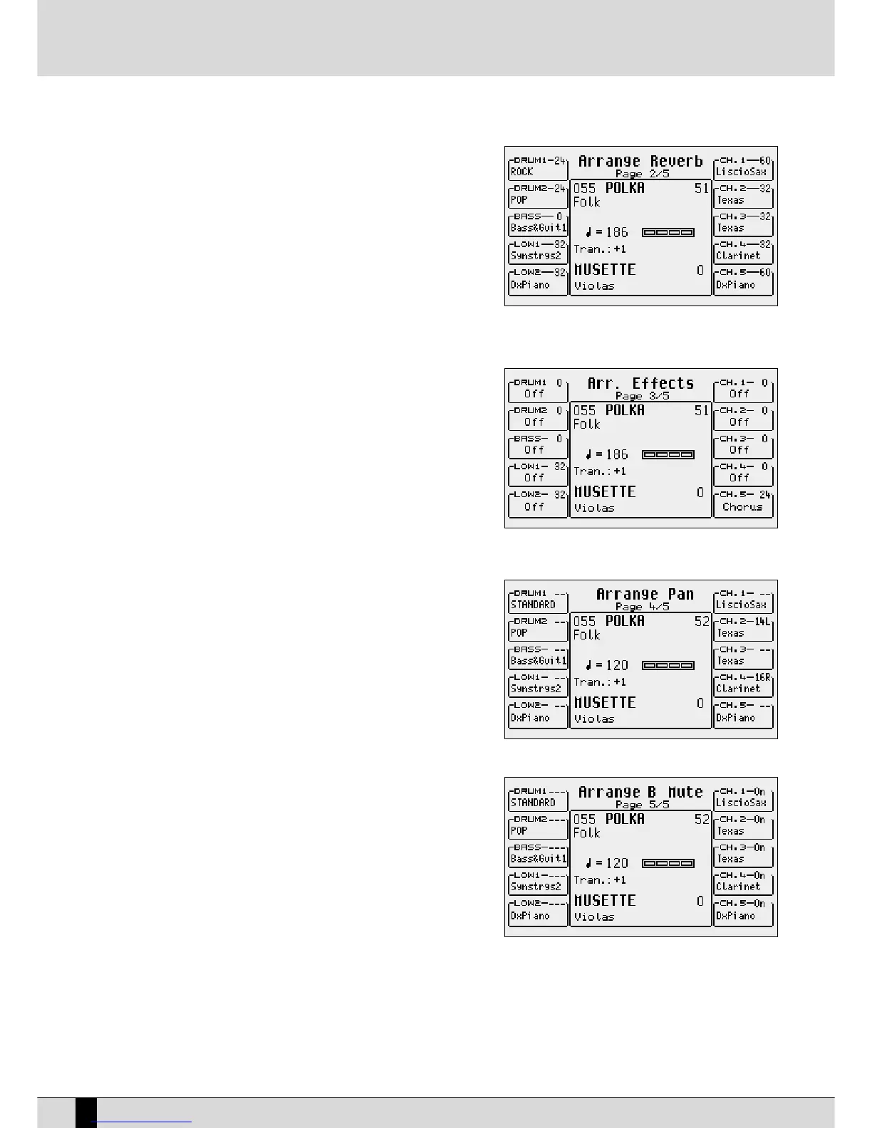 For each of the 4 Arrangers, you can program which sections will be Muted each