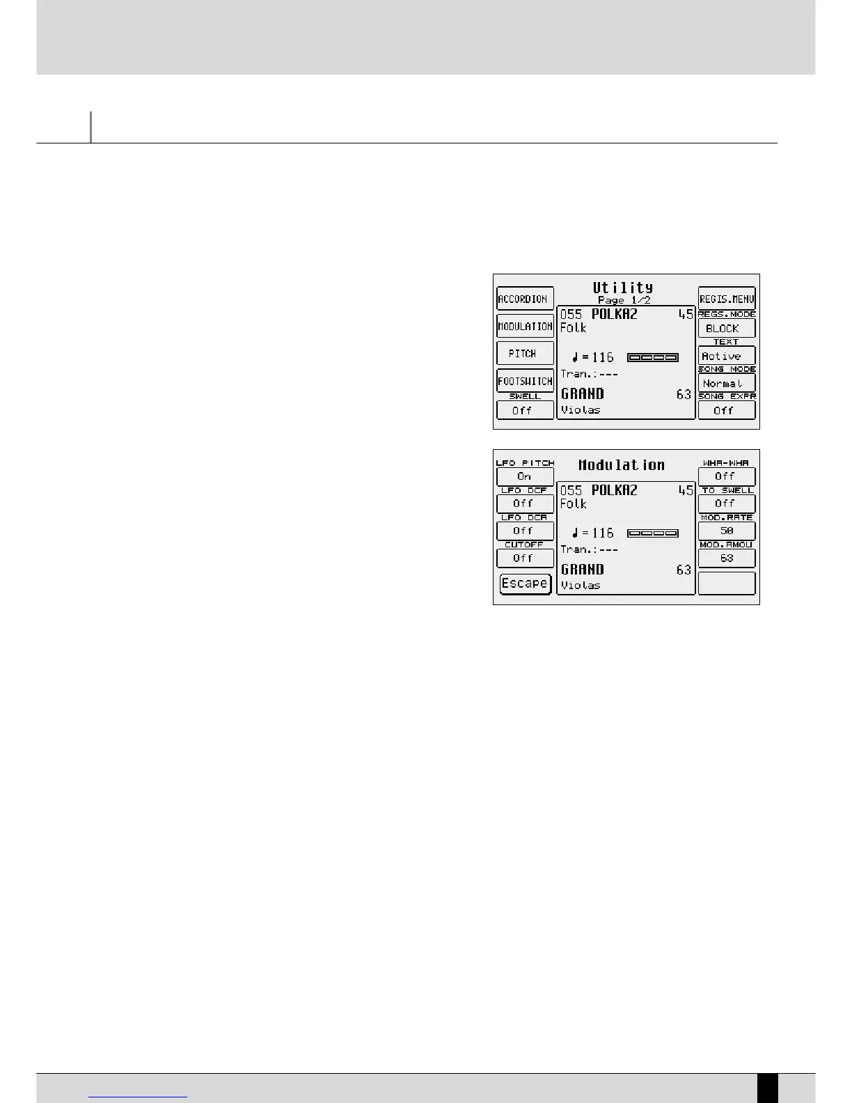 The Utility menus are used to control the physical controllers, the MIDI accordions, the pedals and a group of parameters that modify the gene-