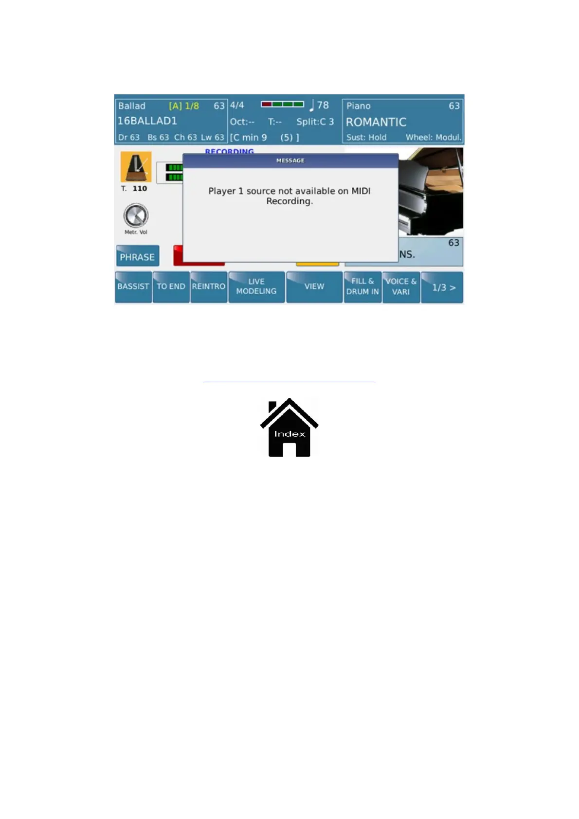 Info: In Midi Record (Phrase or Song) mode record from the source player to 1will be unavailable . However SD9