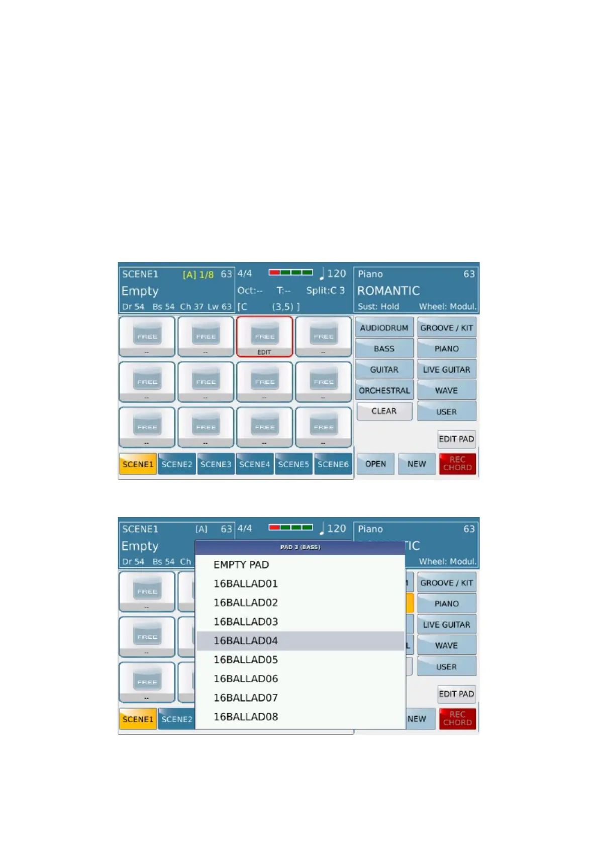 of the 6 scenes available. On Start mode , the active pads of the scene, come into play at the beginning of the new