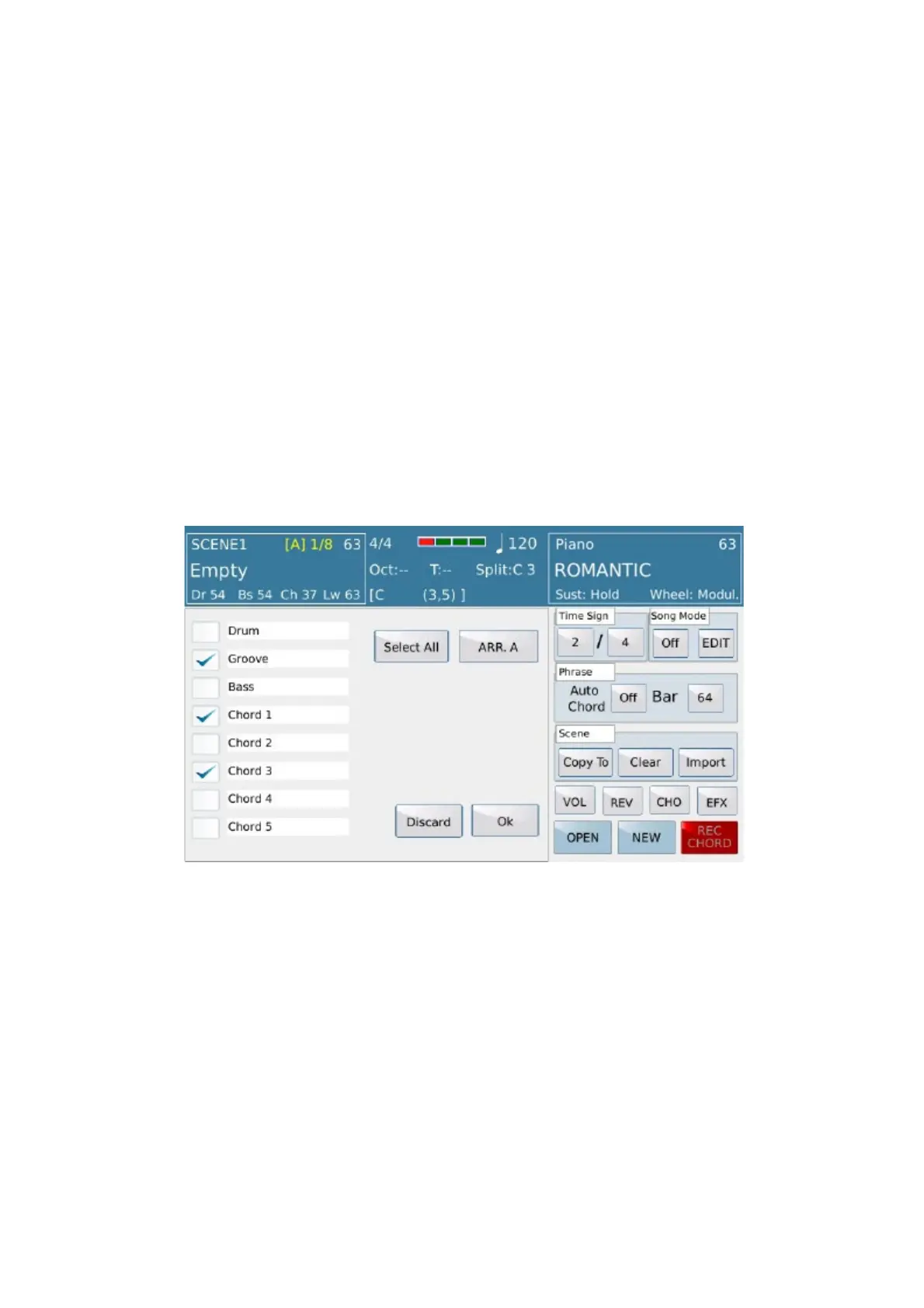 many measures you would record on its "BAR" (1 to 64). Switch on the REC CHORD button and press Start. Now