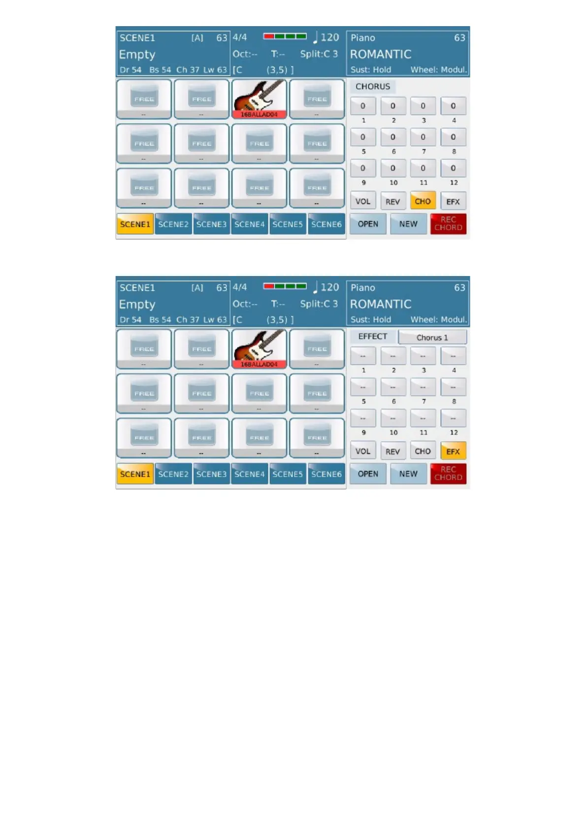 Volume, Reverb, Chorus and EFX can be controlled on every pad