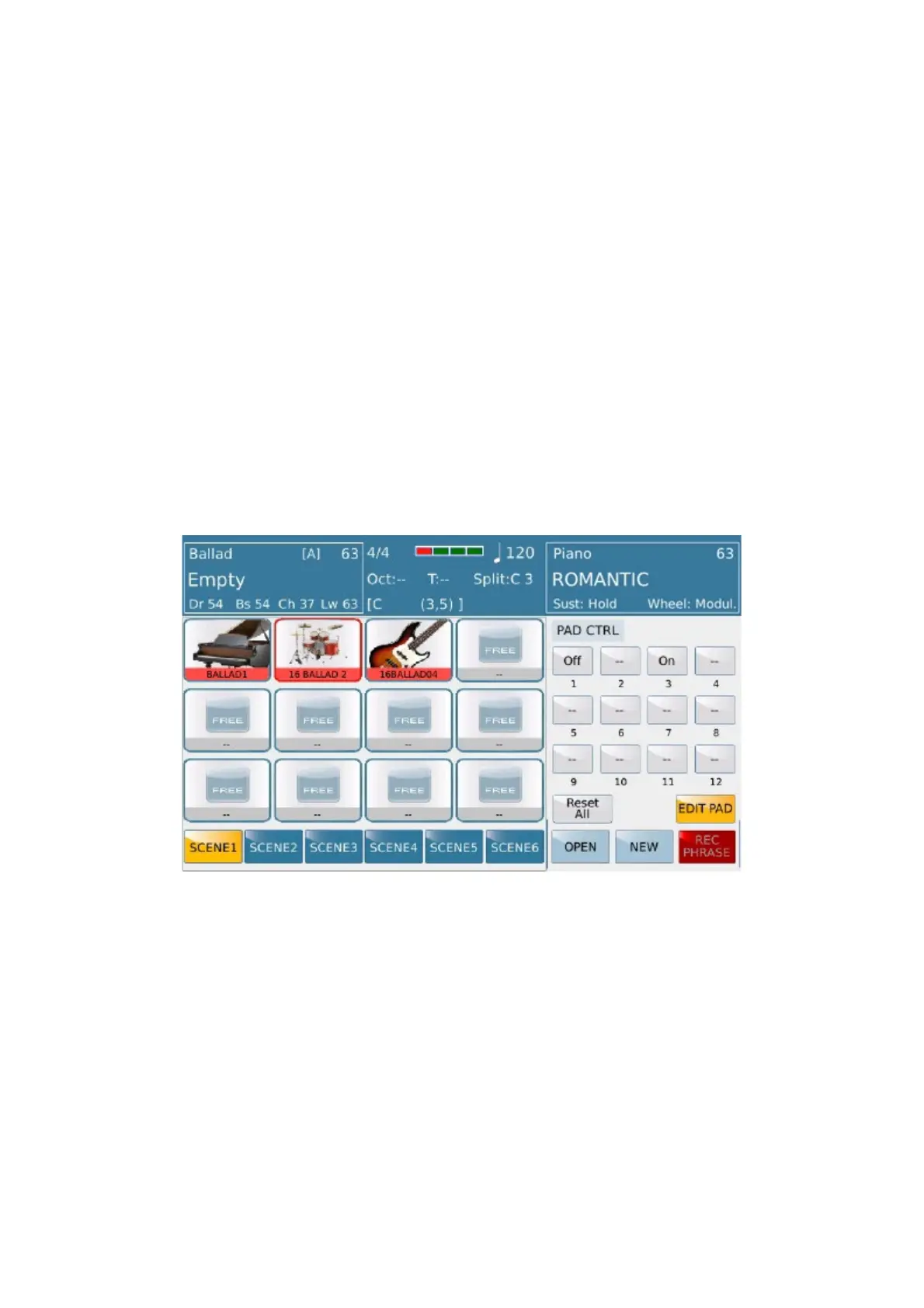 -PAD CONTROL: Press this button to opens a menu where you can choose how any pad can operate