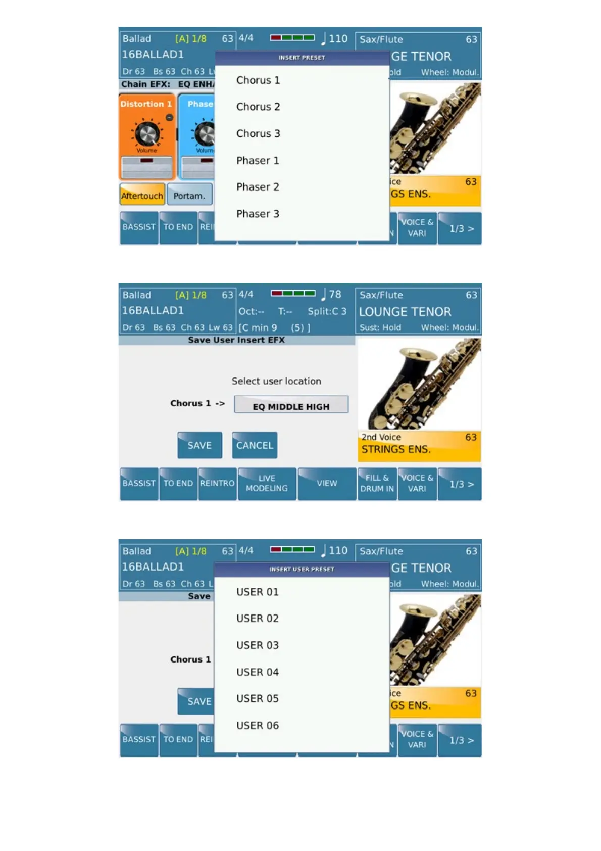 By pressing SAVE button will be stored such your own USER EFX .