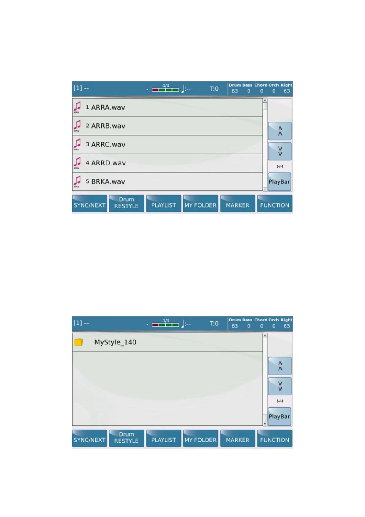 These files must be saved in a folder with its name (eg: MyStyle_140) in SD 9 directory in the following root: