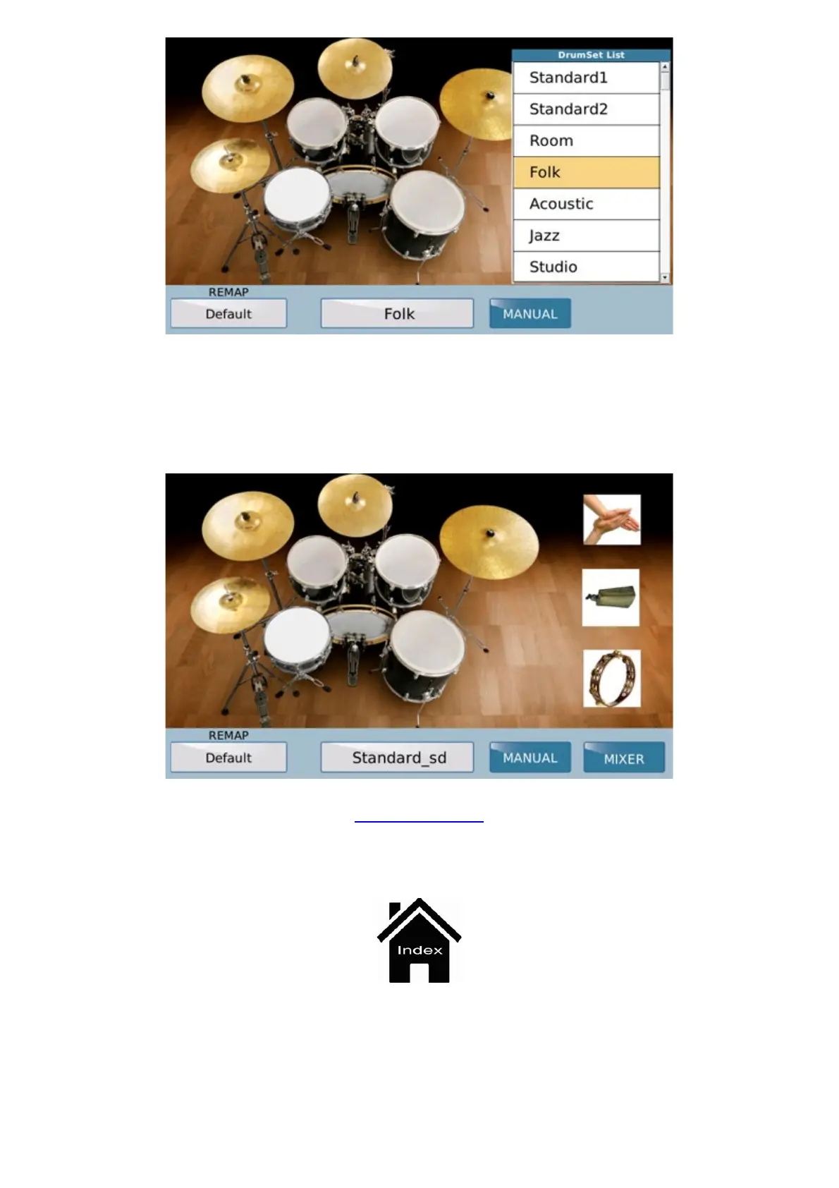 drums etc., a list of the Drum Kits is displayed. Press