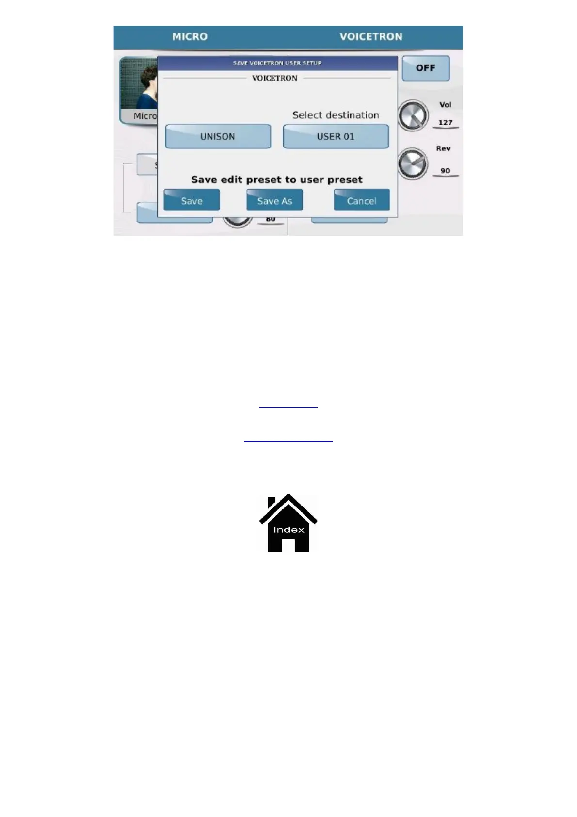 - SAVE AS: Opens an alphanumeric keypad that allows you to assign a new name to the Preset.