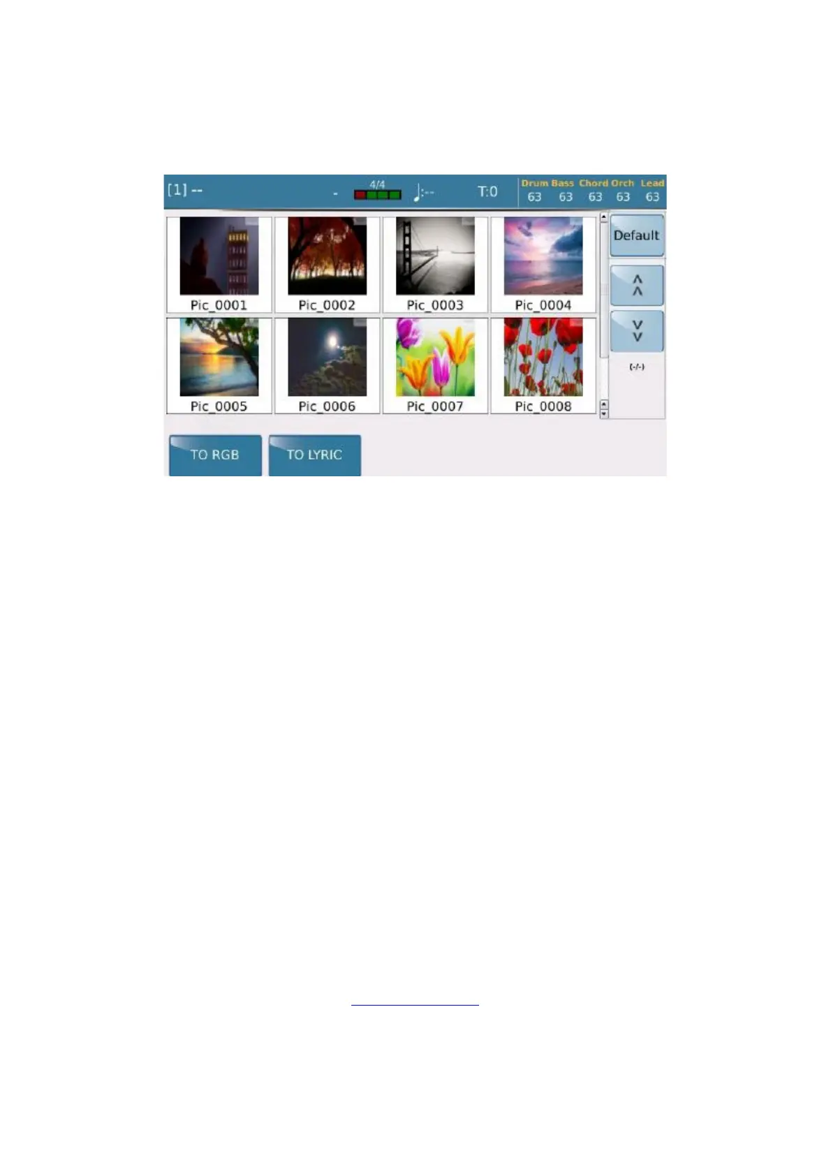 When you select the TO RGB and TO LYRICS functions, the image selected will be displayed as background of
