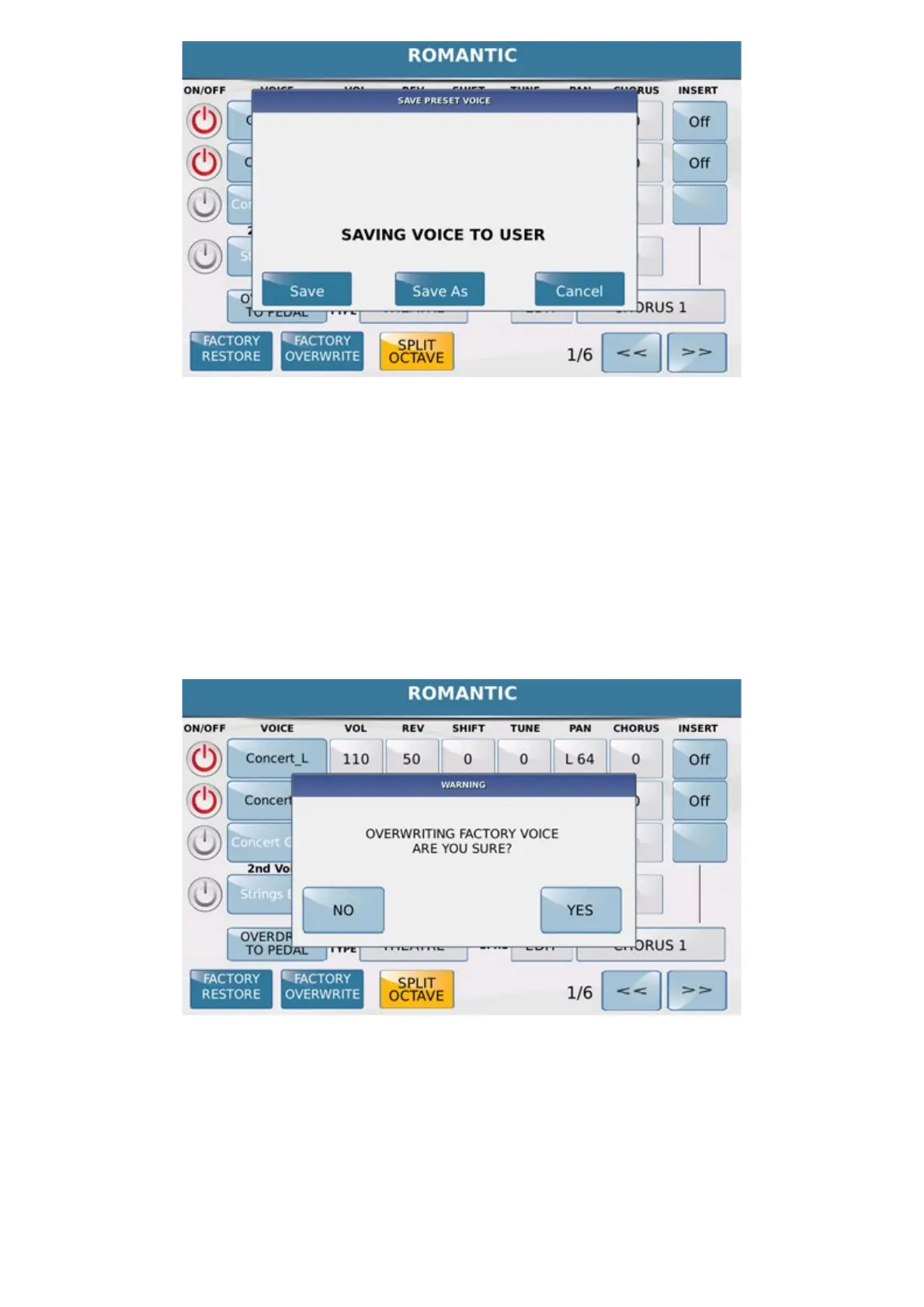 There is also the possibility to save the VOICE changed on the Internal Section (PRESET) .