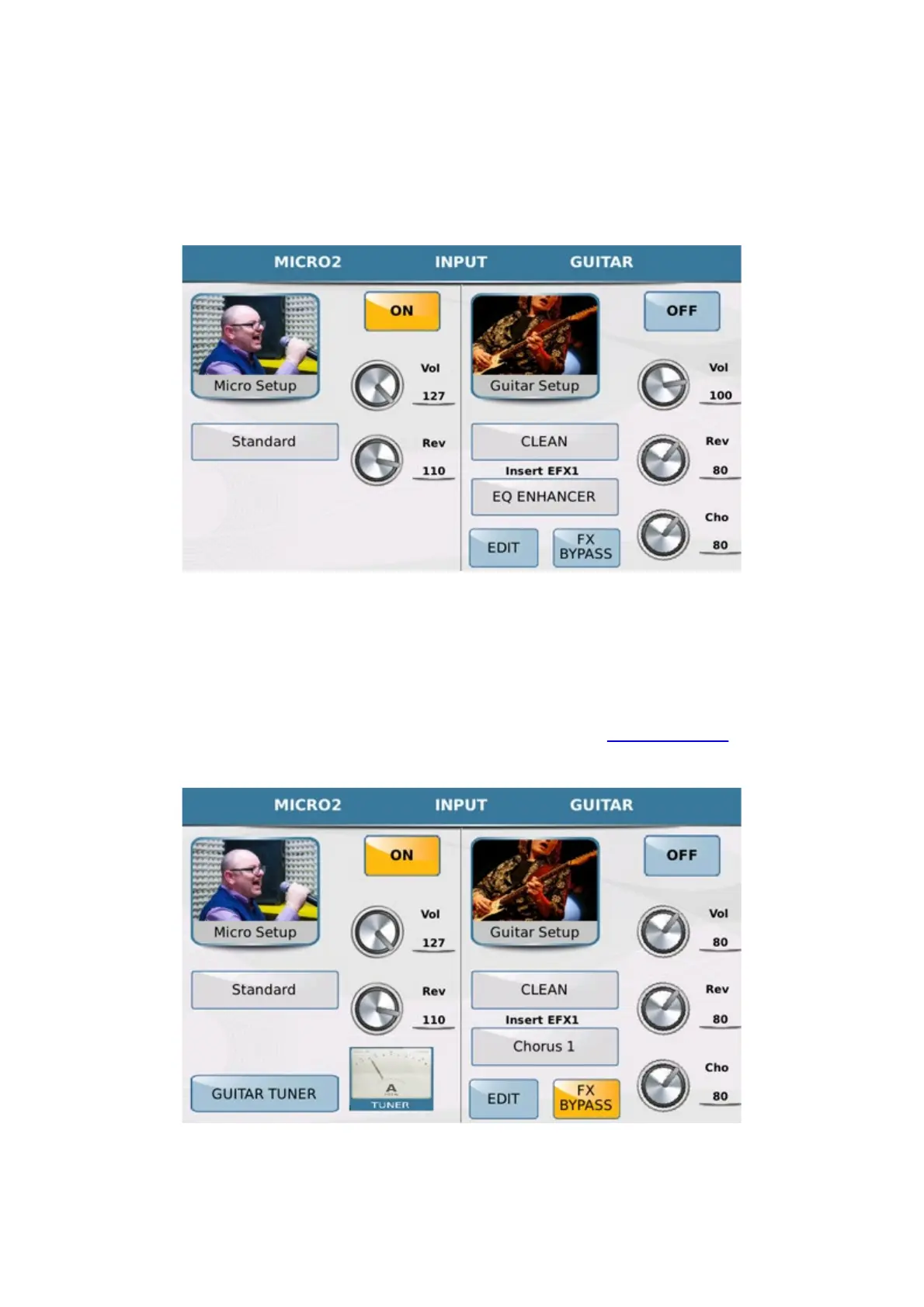 the second is GUITAR and is for the guitar effect settings. Considering that this is a single audio input, the