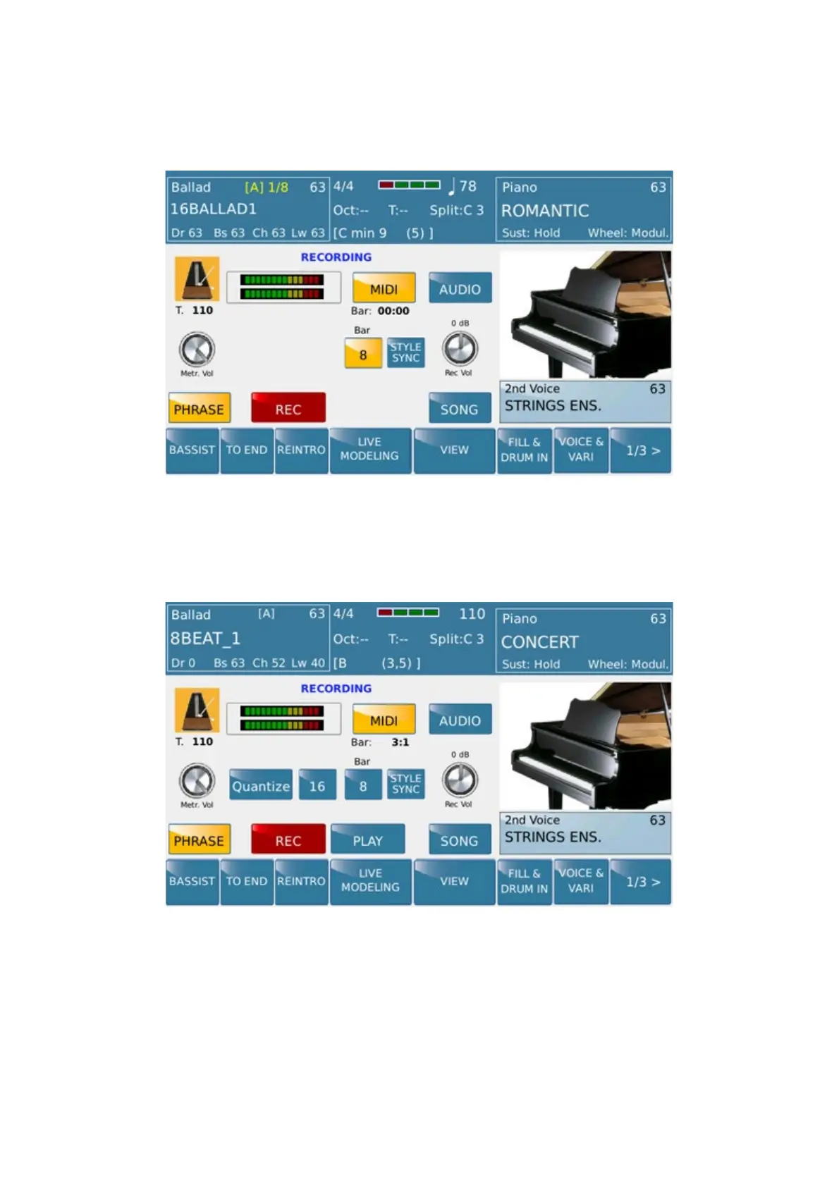 up to 8 measures. This action will force to exit automatically from the method RECORD when 8 measure bar will be