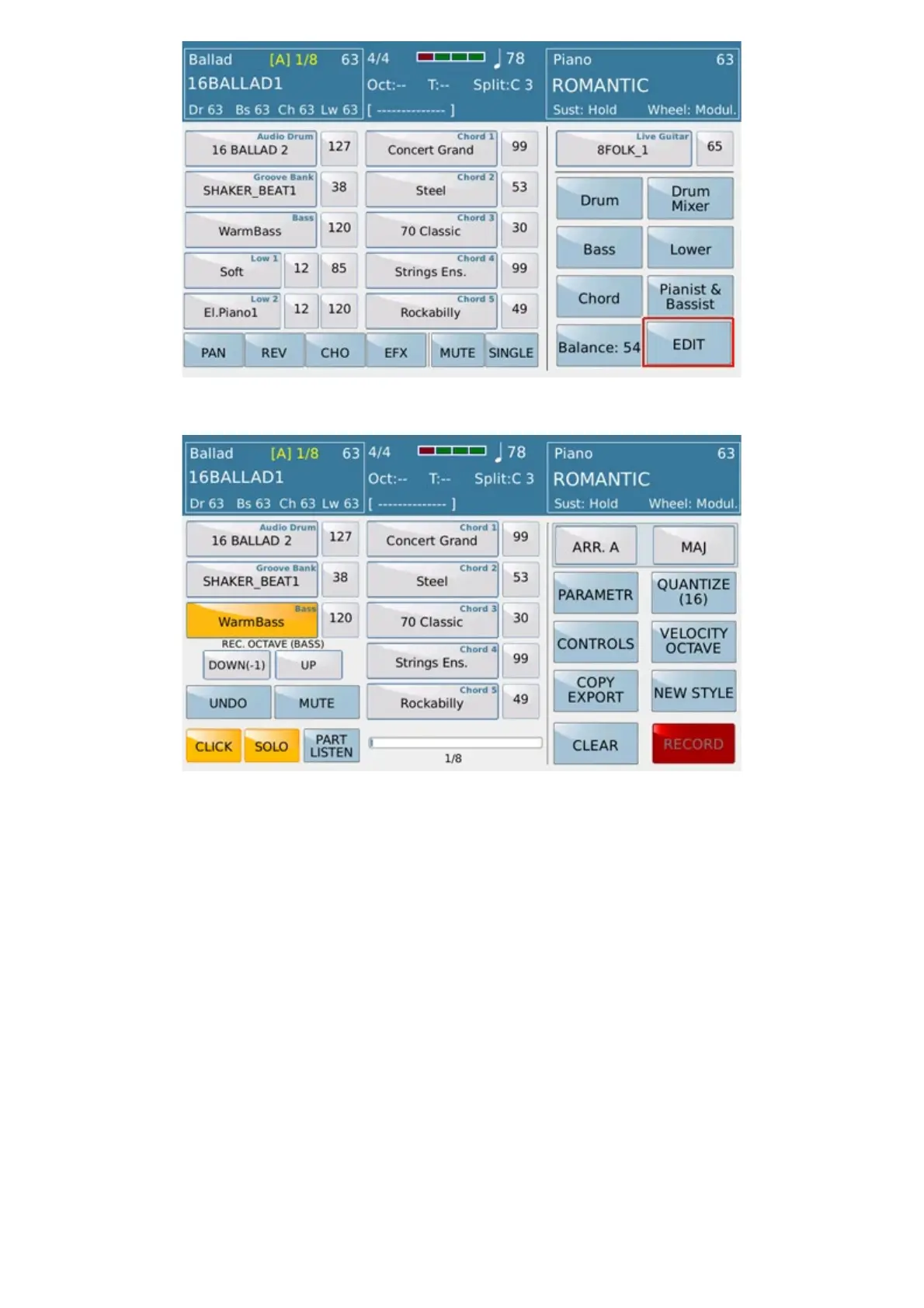 section (Bass / Chord 1-5) an Drum , Groove also selectable on RECORD Mode.