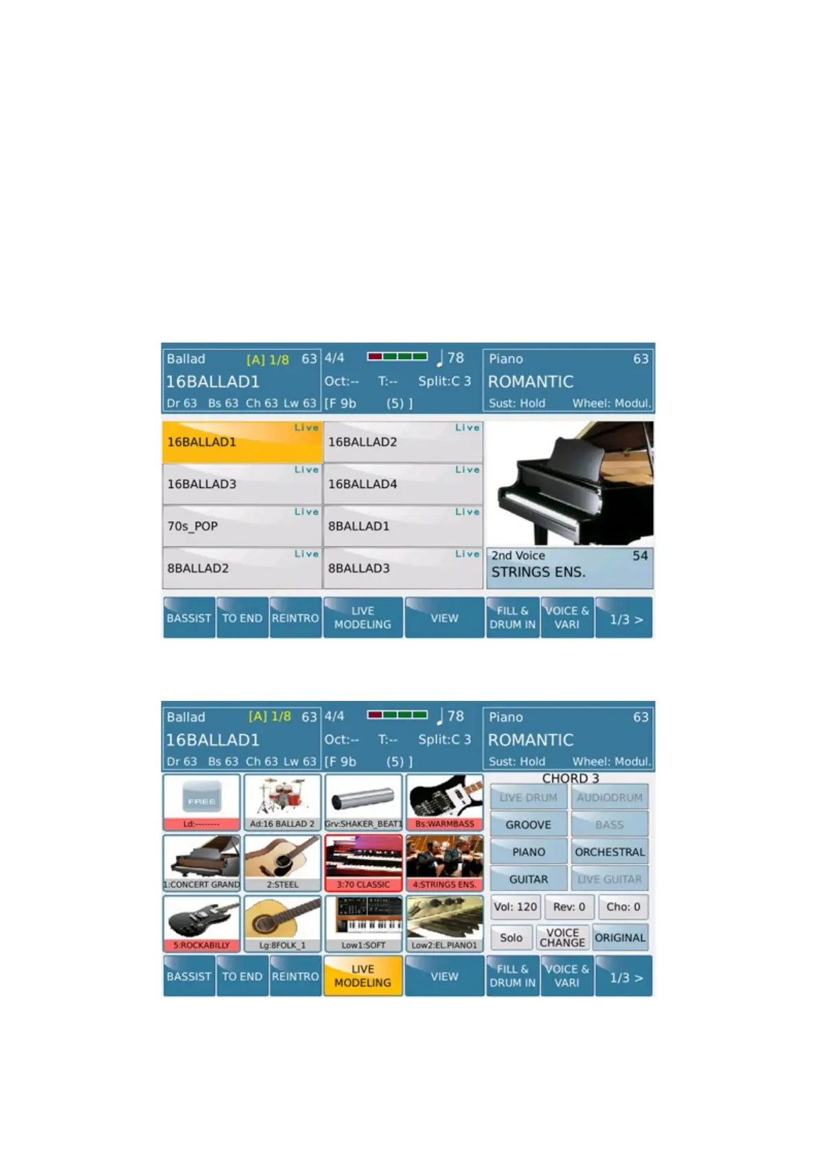 This feature allows any inexperienced user to customize easily their arrangements (Drum, Bass, Chord, Live Guitar,