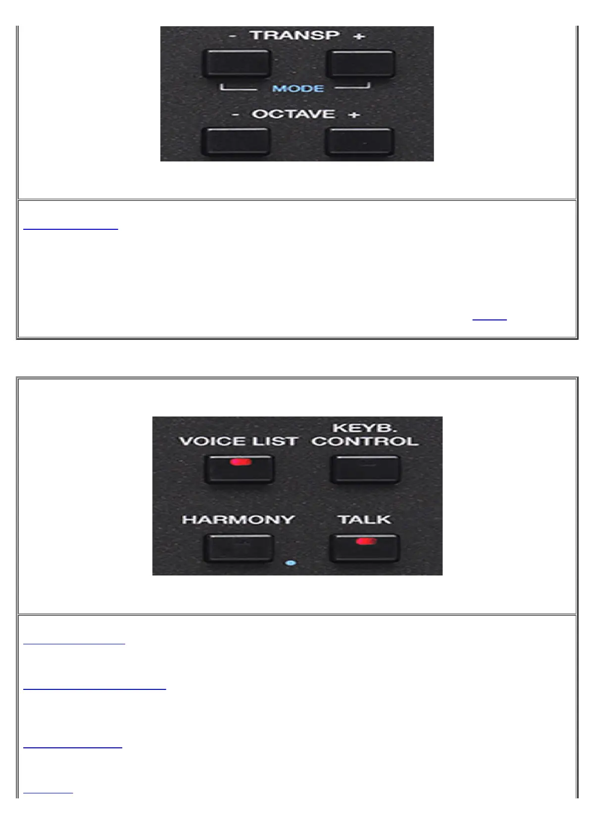 KEYB CONTROL : By pressing this button DOUBLE Voice function is activated on right hand. Pressing