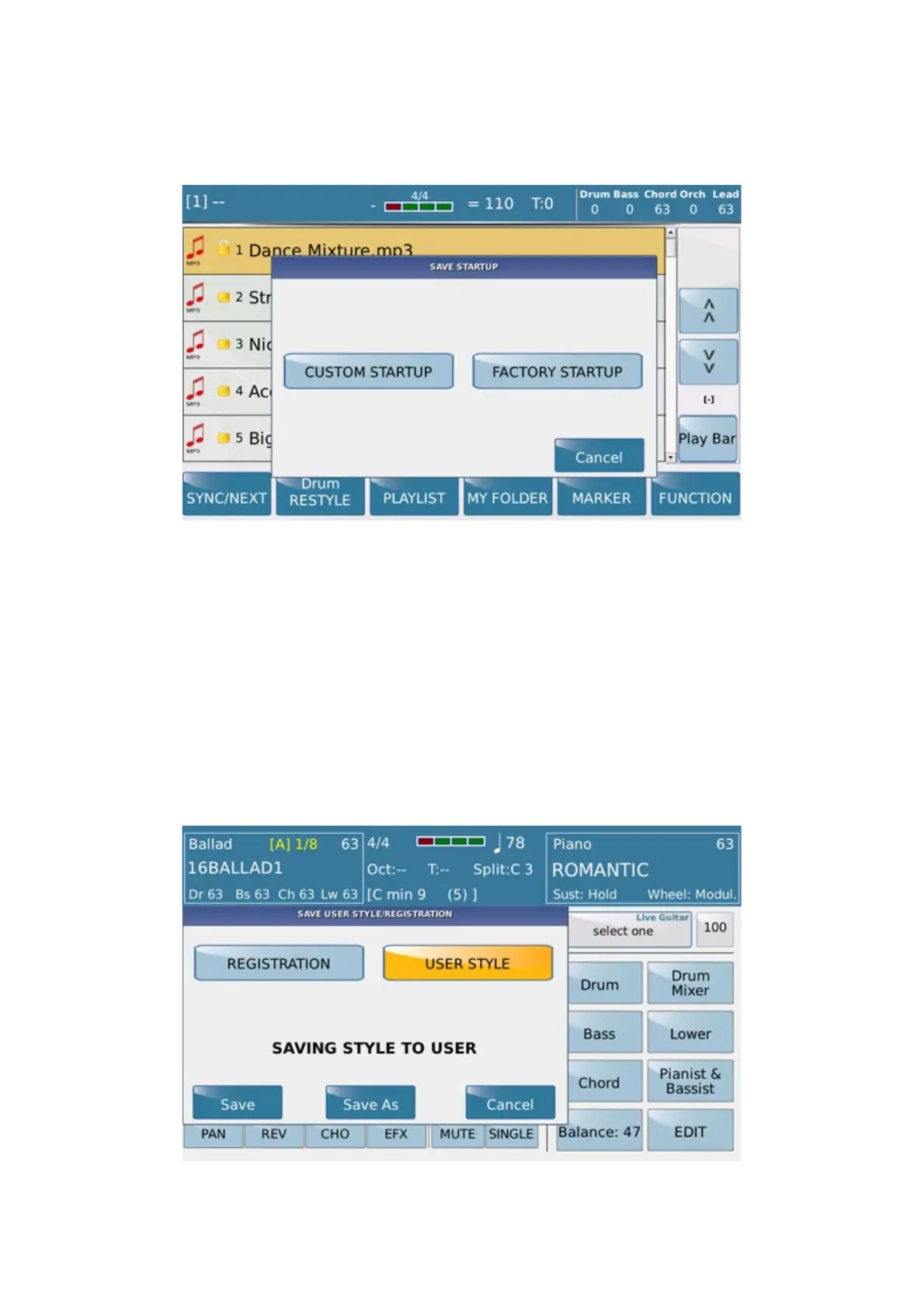 When you press the SAVE key in Style mode, the following window is displayed: