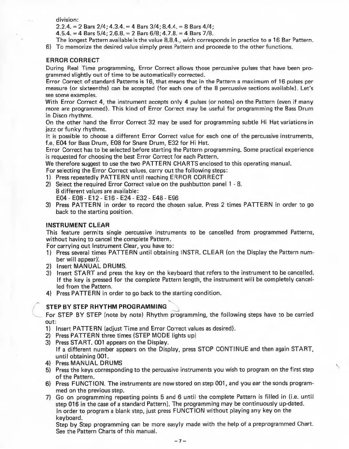 KETRON SolTon PROGRAMMER 24S - Error Correct; Instrument Clear