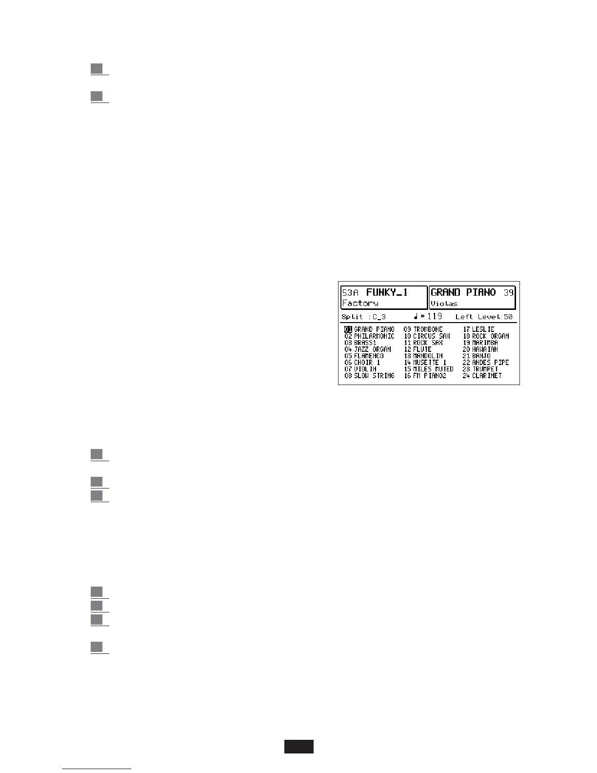 Voices, 24 for each of the 2 Banks in two individual lists that are clearly shown on the display:
