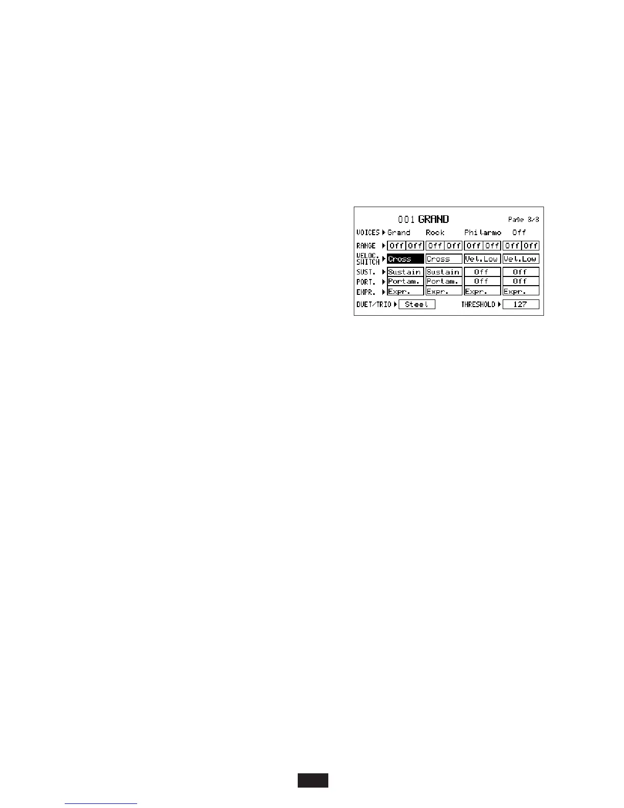 Velocity Switch: this parameter enables the control of the Program Voices functioning, according