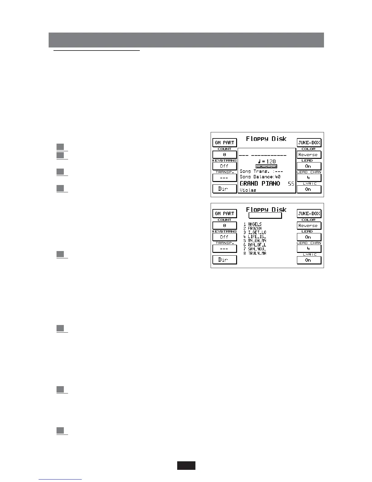 To call-up a Song or Midi-file from Disk:
