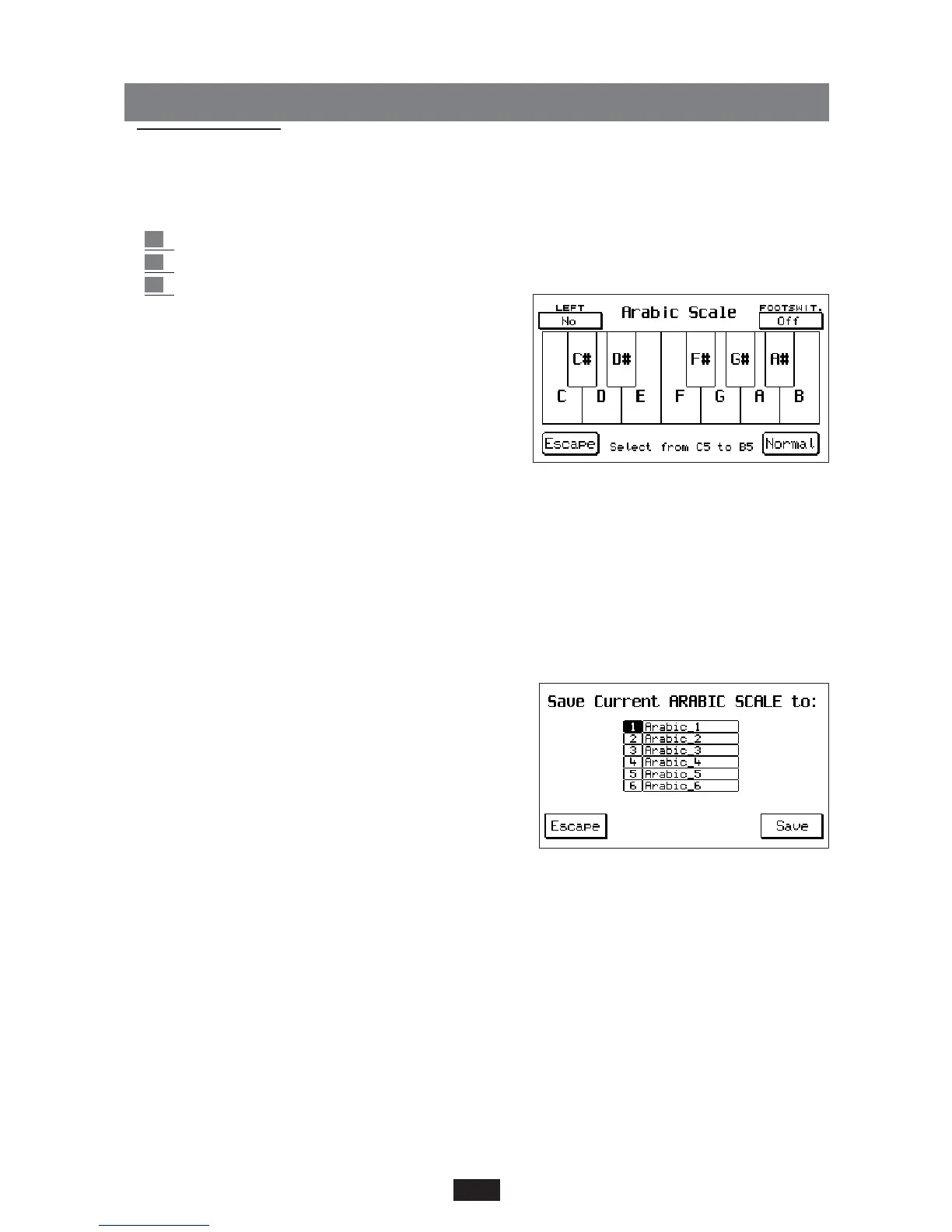 Arabic Scale: The selection of the intervals of the Arabic scale is achieved using the keyboard