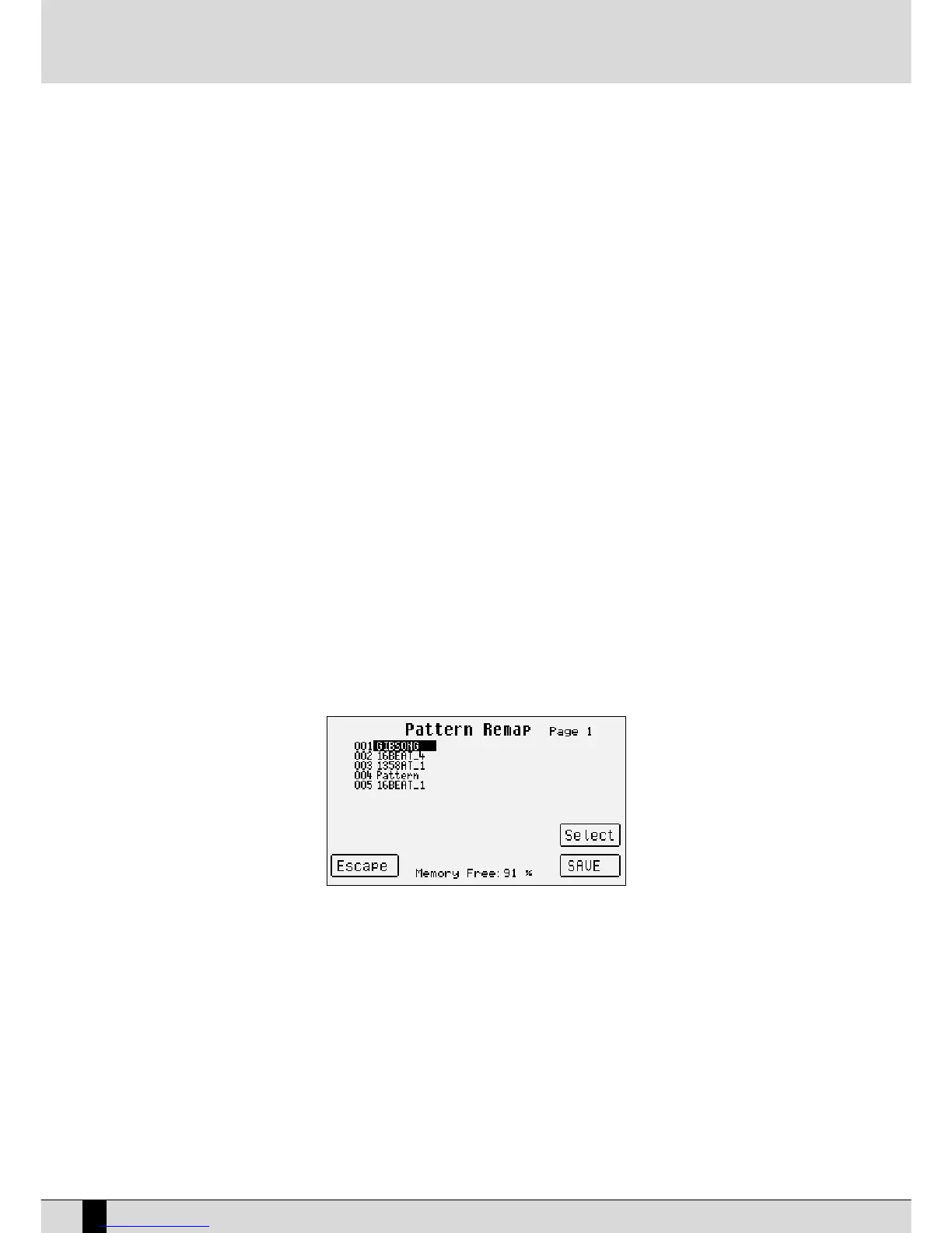 This function allows you to modify the order of the Patterns within the Pattern bank. The page shows the list of the Patterns stored in RAM, to
