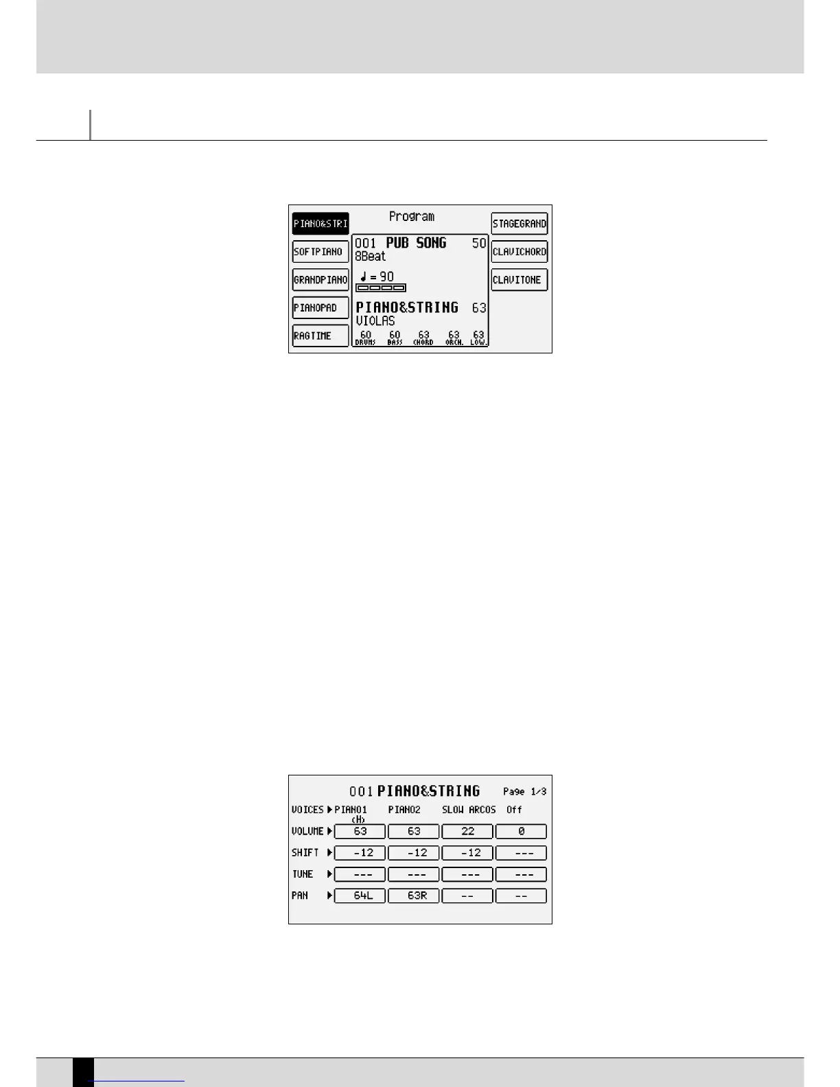 Voice used in the Program, whereas the horizontal lines refer to the parameters, grouped together in three pages that are accessed using the