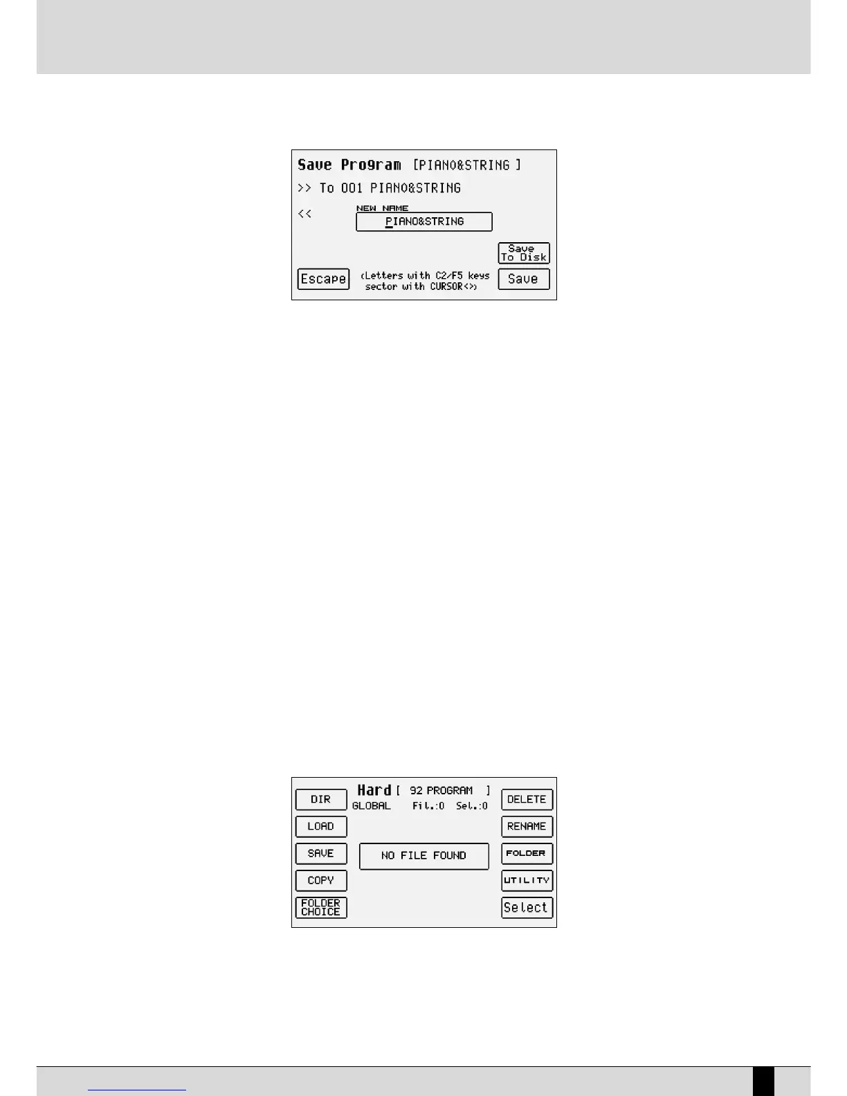 When the Program to be saved on disk has the same name as a Program that already exists, the display shows three options, namely: